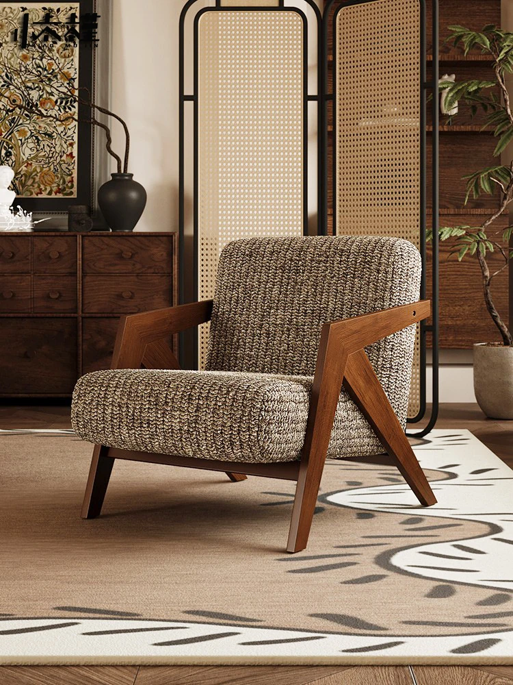 小木槿ヴィンテージスタイル一人用ソファチェア|高級民宿やリビングにぴったり!デザイナーズデザインのレトロなリラックスチェア|バルコニーにも最適!