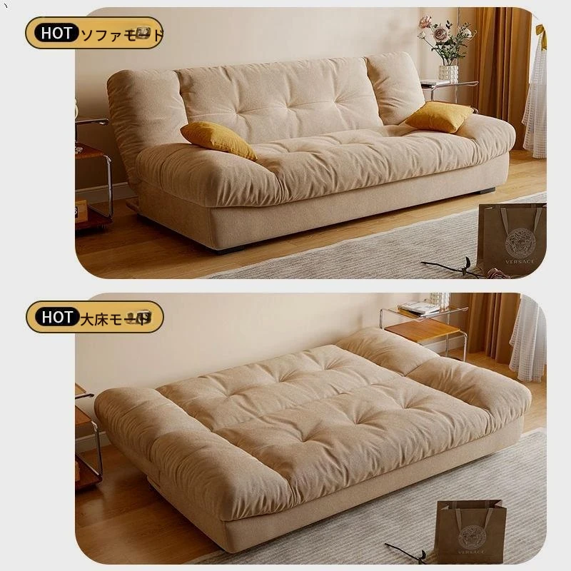 雲のようにふわふわ!折りたたみ式多機能ソファベッド - モダンでシンプルなデザイン、リビングや小さな部屋にぴったり!クリーミーな風合いで、インスタ映え間違いなしの人気商品!