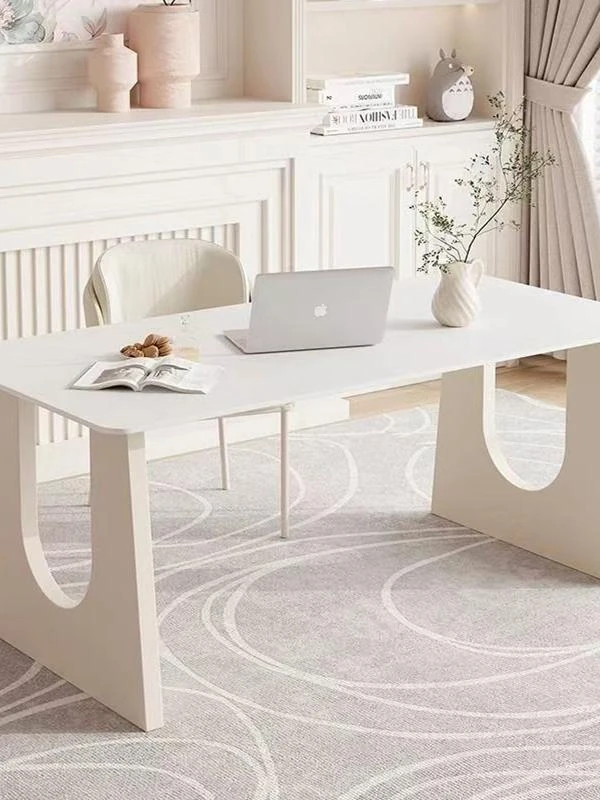 洗練されたクリーム色のインス風デザイン、現代的なシンプルさを兼ね備えた岩板パソコンデスク。学生に最適な学習環境を提供し、寝室や書斎にぴったりのスタイリッシュな書桌です!