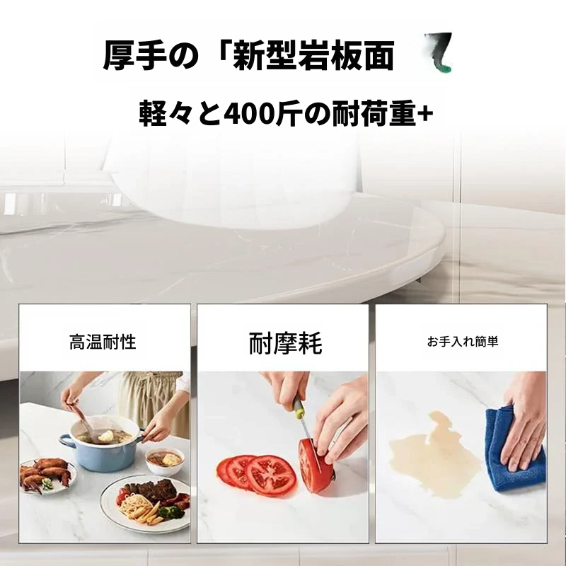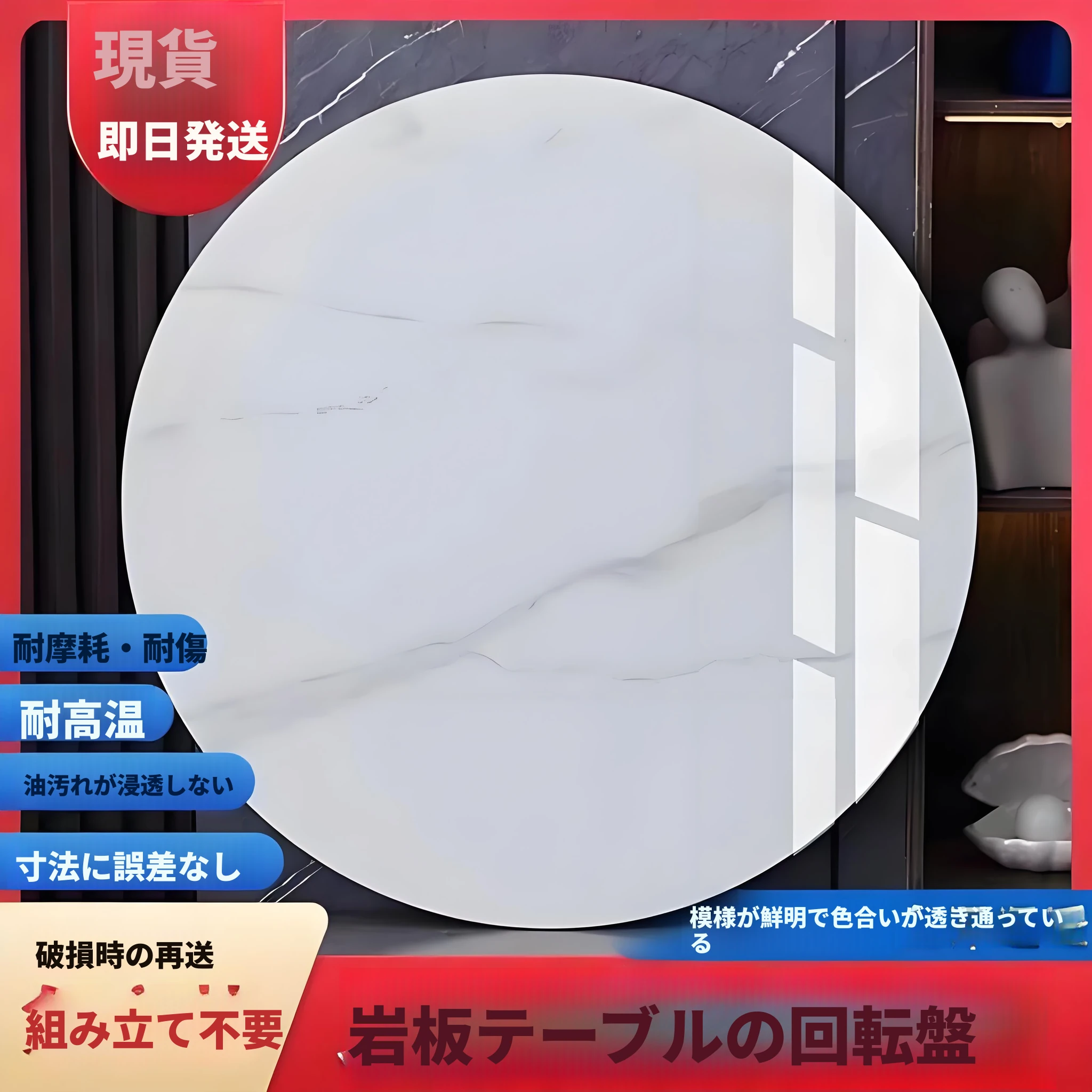 家庭用の円形回転テーブル - 大理石調の美しいデザイン、岩板製の高品質な回転プレートで、食卓を華やかに演出します!レストランにも最適なスタイリッシュな円卓です。