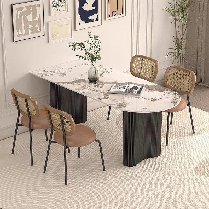 フランス風のロックプレートダイニングテーブル - シンプルで洗練されたアイランドスタイル、人気のレストランにぴったりの高級北欧デザインのダイニングテーブル&チェアセット。おしゃれで心地よい食事空間を演出!