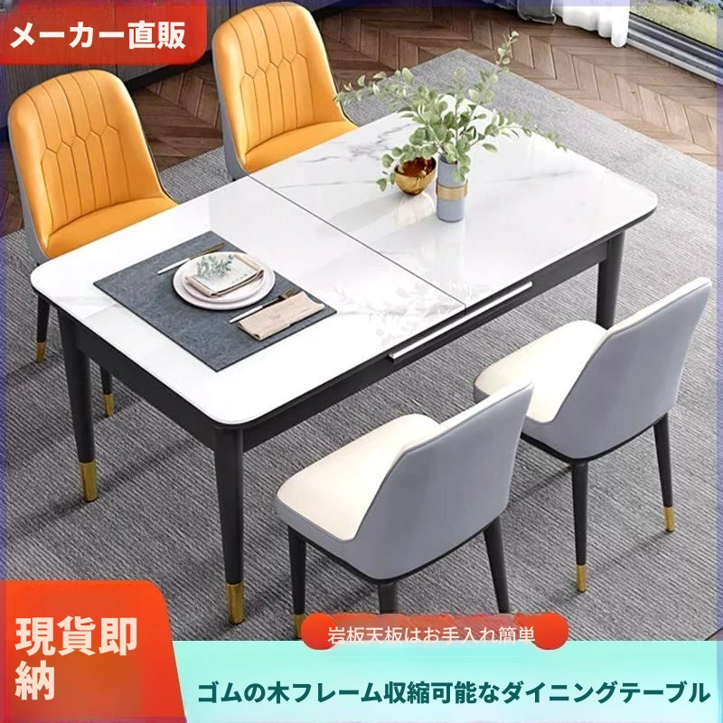 香港送料無料!おしゃれな実木製の岩板ダイニングテーブル&チェアセット。現代的でシンプルなデザイン、小スペースに最適な折りたたみ&伸縮可能な食卓。上質な軽奢生活を実現!