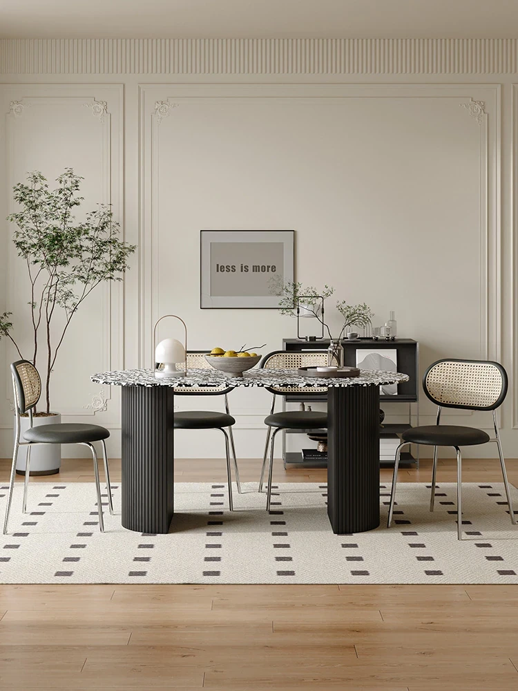 小木槿フレンチレトロスタイルダイニングテーブル&チェアセット|小型住宅に最適な人気の水磨石テーブル|エレガントな楕円形デザインでおしゃれな食卓を演出!