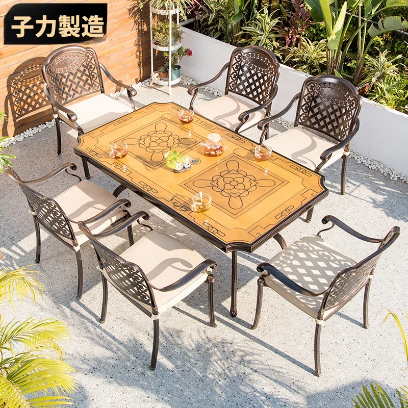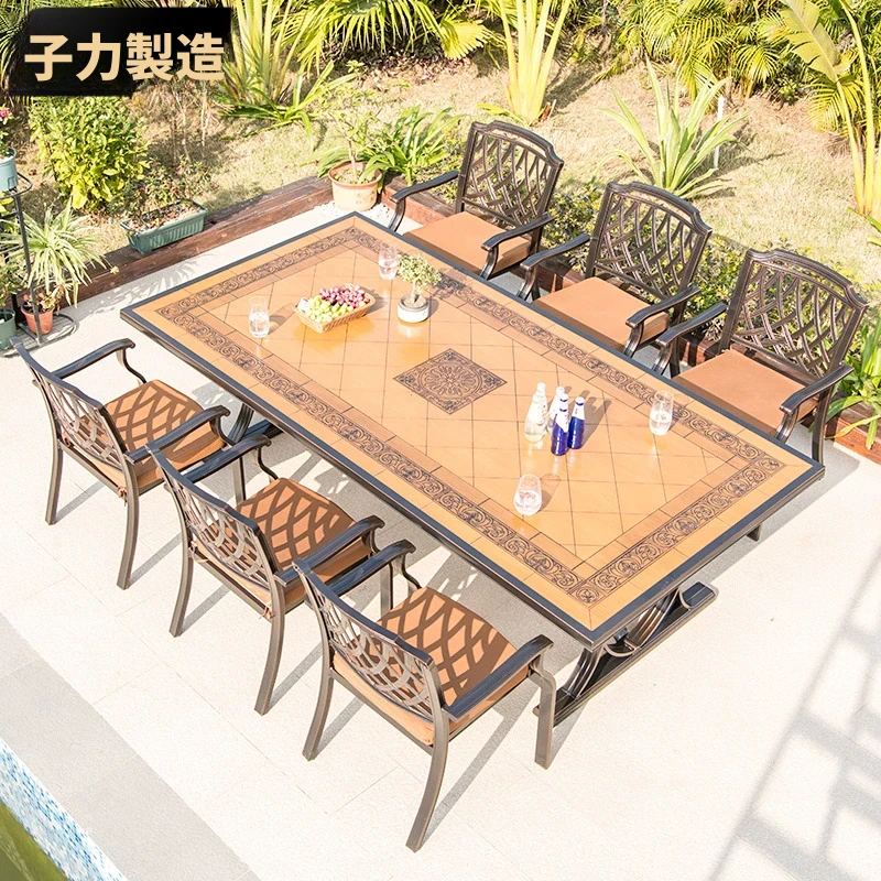 子力アウトドア鋳造アルミ製テーブルセット|タイル仕上げのエレガントな欧風デザイン|庭、バルコニー、別荘に最適な耐久性とスタイルを兼ね備えたテーブルと椅子のセット!