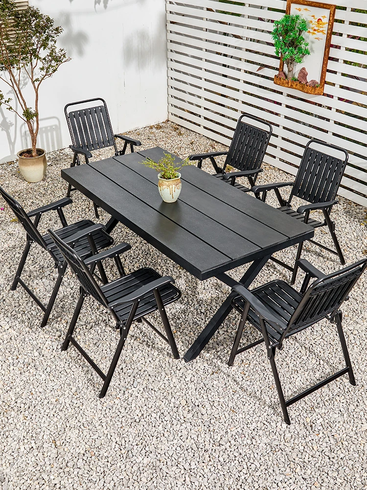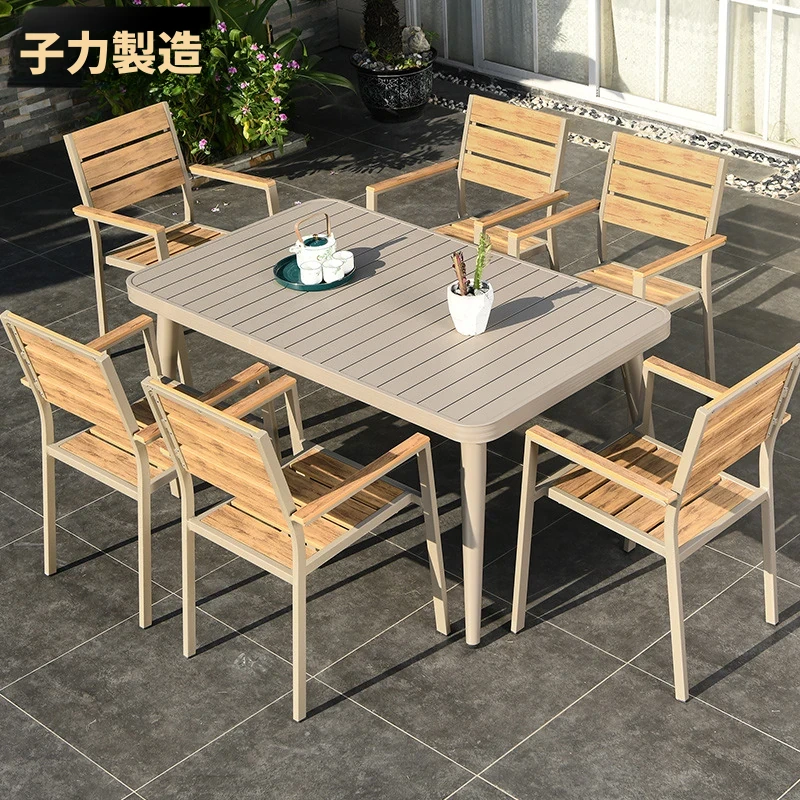 子力アウトドアテーブル椅子セット - おしゃれな庭やバルコニーに最適!耐久性に優れたプラスチックウッド製、リラックスしたひとときを提供するバーベキューやティータイムにぴったりなデザインです。