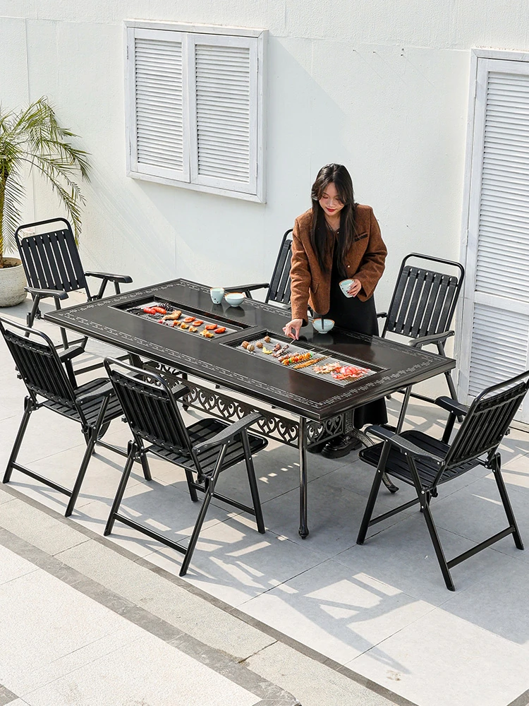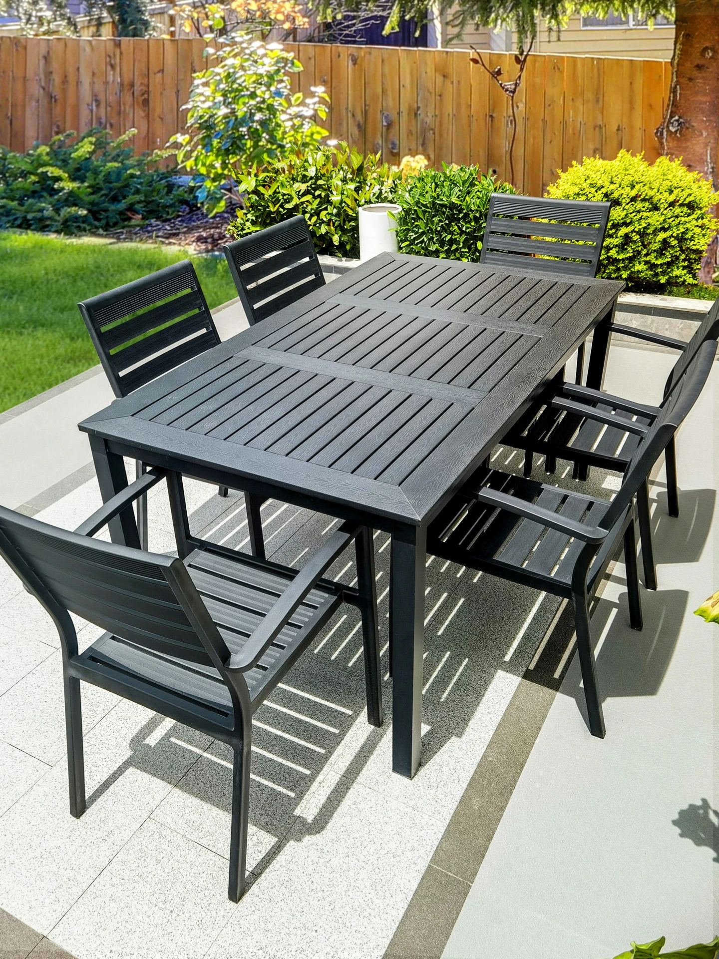 アウトドアテーブルセット - ブラックのアルミ製バーベキューセット!庭やテラスで使える、スタイリッシュで快適なデザイン。バーベキューやお食事に最適な選び抜かれたアイテムで、あなたのアウトドアライフを一層楽しく演出します!