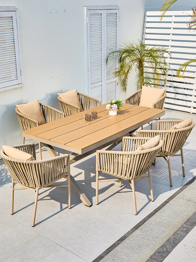 アウトドアテーブル&チェアセット - 庭やバルコニーに最適!防水・UVカット機能付きで、快適な屋外リラックスタイムをお楽しみいただけます。ヴィラや庭園にぴったりのスタイリッシュなデザイン。