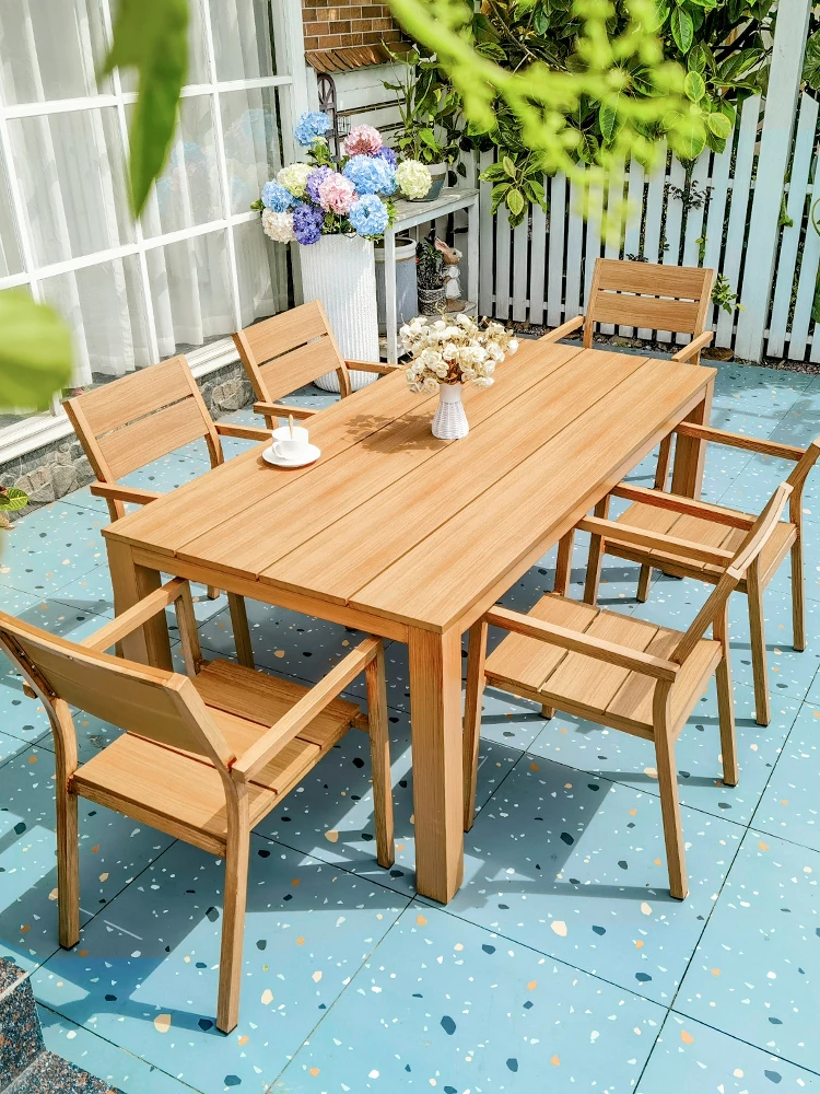 屋外テーブルチェアセット|庭やガーデンに最適なプラスチックウッド製のテラス用ダイニングテーブル|カフェやティールームにぴったりのリラックスチェア!
