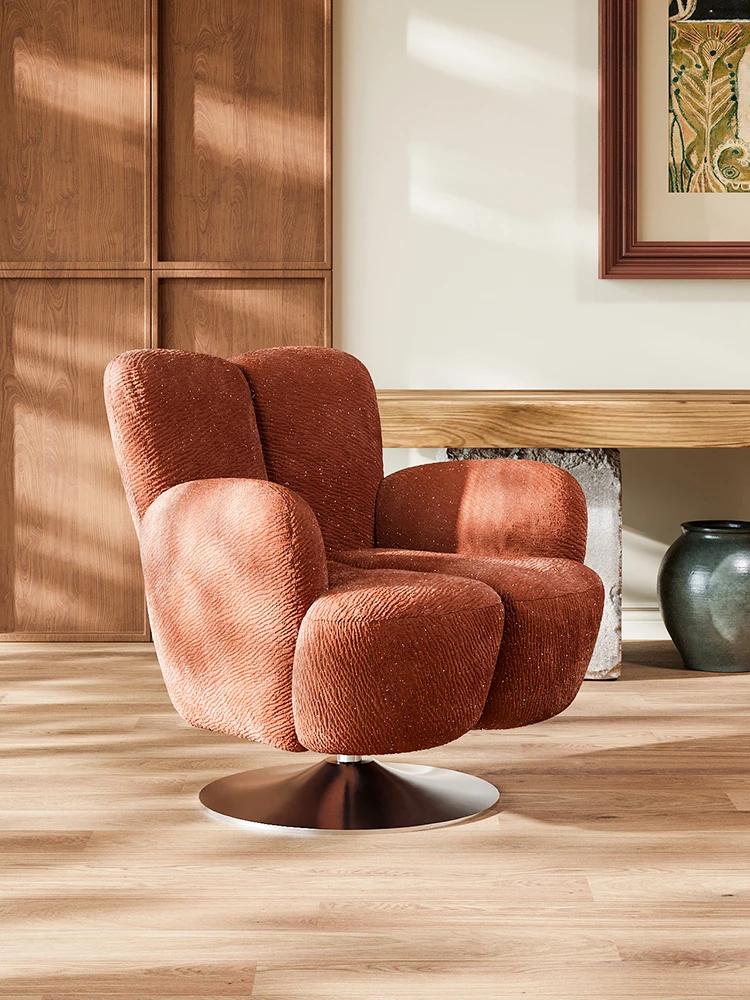 Vintage-Inspired Designer Single Sofa Chair - Creative and Luxurious Rotatable Lounge Chair for Home, Perfect for Bedroom Vanity and Relaxation