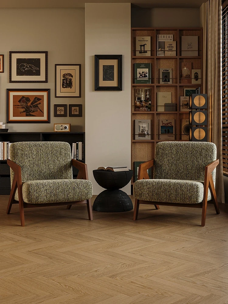 Vintage Richard Single Leisure Sofa Chair - Wabi-Sabi Retro Design for Living Room, Balcony, and Airbnb - Solid Wood Armchair for Comfortable Relaxation