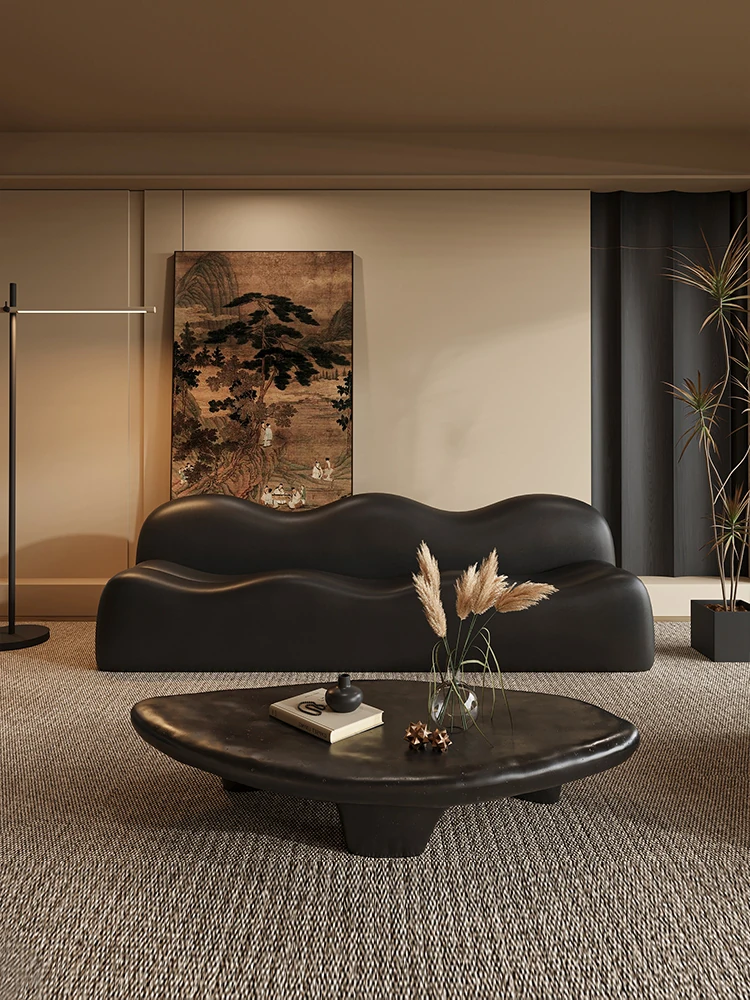 Wabi-Sabi Vintage Style Beauty Salon Outfit - Trendy Wave Faux Leather Sofa for Small Spaces, Perfect for Coffee Shops and Cozy Lodgings
