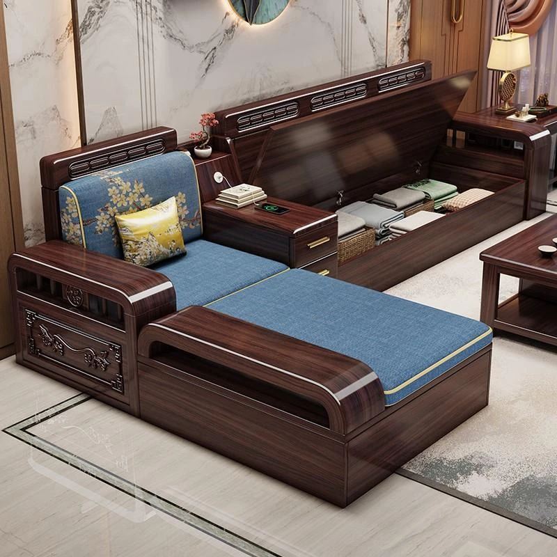 Elegant New Chinese Style Solid Wood Sofa for Small Living Rooms - 2025 New款 Song Dynasty Aesthetic Louhan Bed with Pull-Out Function