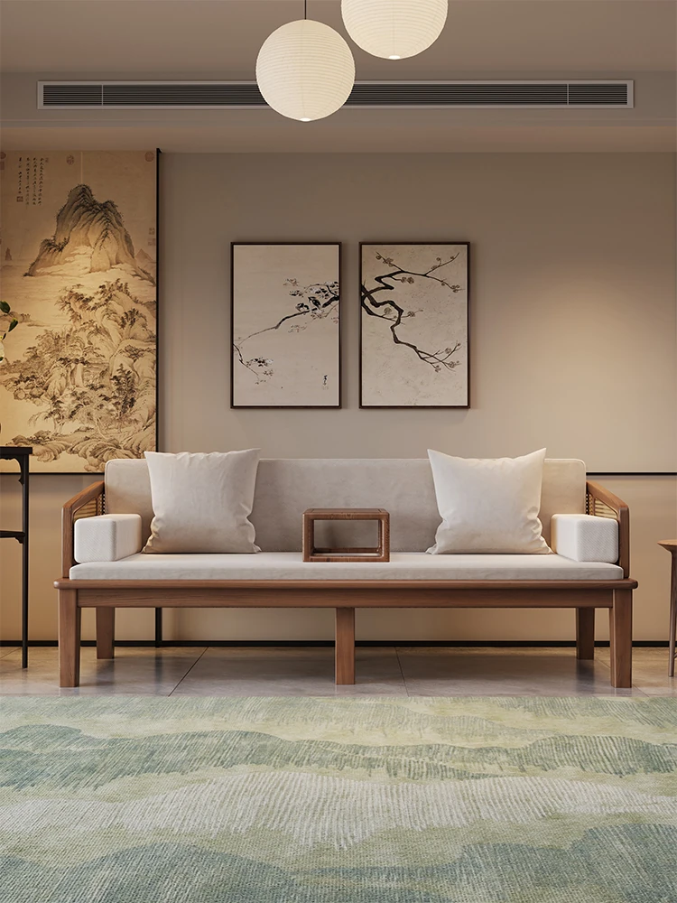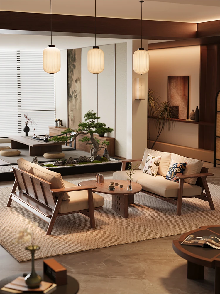 Elegant New Chinese Style Solid Wood Sofa and Coffee Table Set for Home - 2025 New Collection Inspired by Song Dynasty Aesthetics and Zen Philosophy, Perfect for Tea Houses and Cozy Living Spaces.