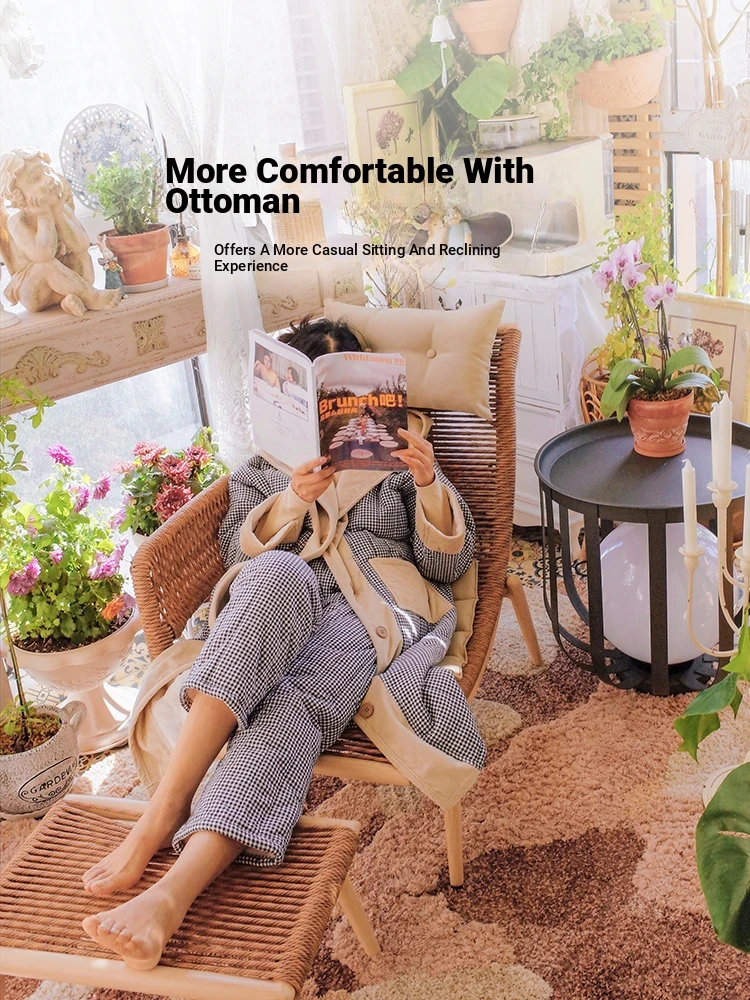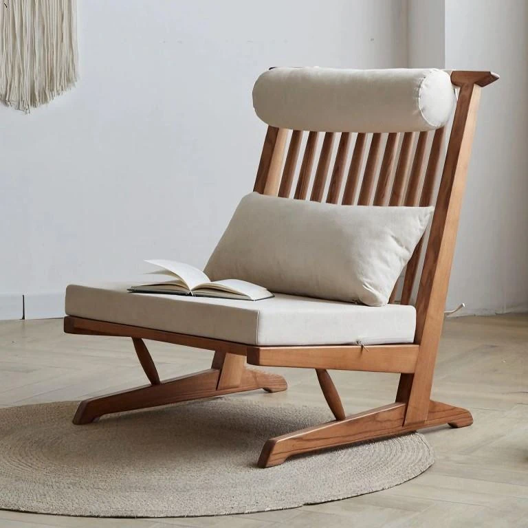 Japanese Solid Wood Lazy Sofa - George Lounge Chair with High Back for Balcony Relaxation, Perfect for Airbnb and Wabi-Sabi Aesthetics