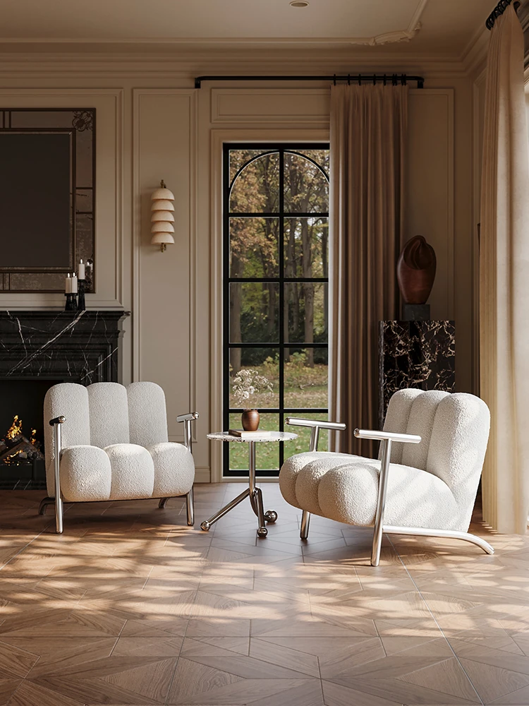 French Creamy Lounge Chair - Designer Lazy Lamb Fleece Armchair for Modern Minimalist Living Room & Balcony - Cozy Single Sofa for Ultimate Relaxation