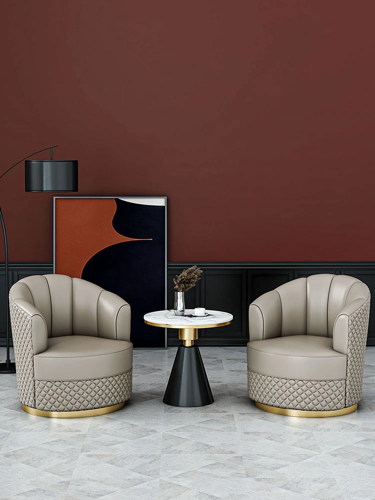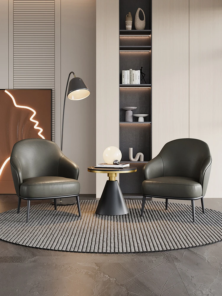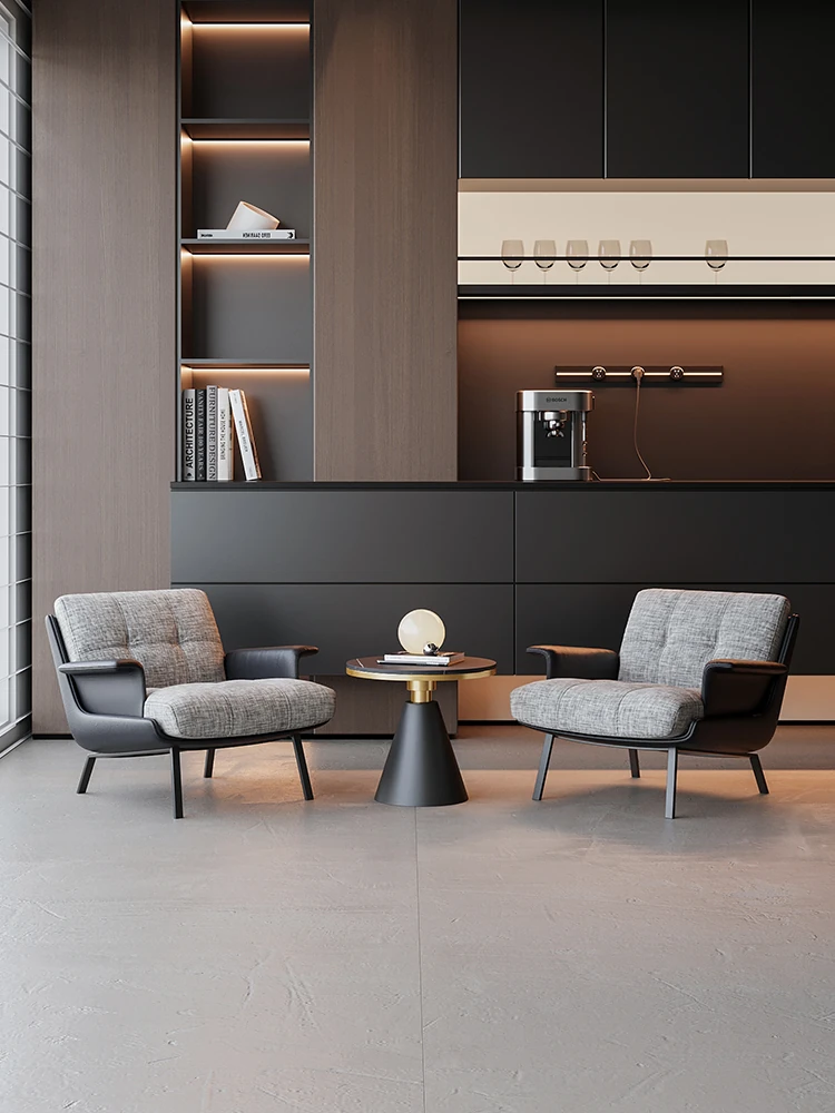 Modern Luxury Hotel Lounge Reception Area Single Sofa Chair - Stylish Relaxation Set with One Table and Two Chairs for Beauty Salons and Meeting Spaces
