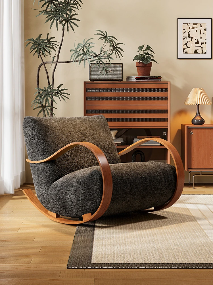 Vintage-Inspired Single Sofa Chair for Bedroom and Living Room - Stylish Recliner, Designer Edition, Creative Rocking Chair for Home Relaxation