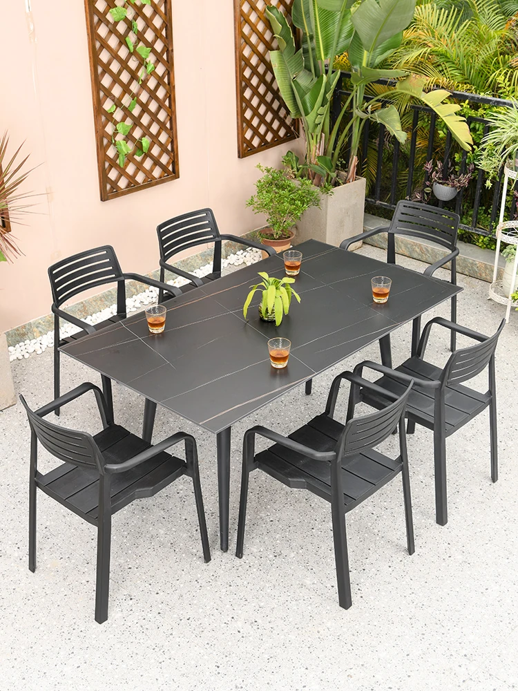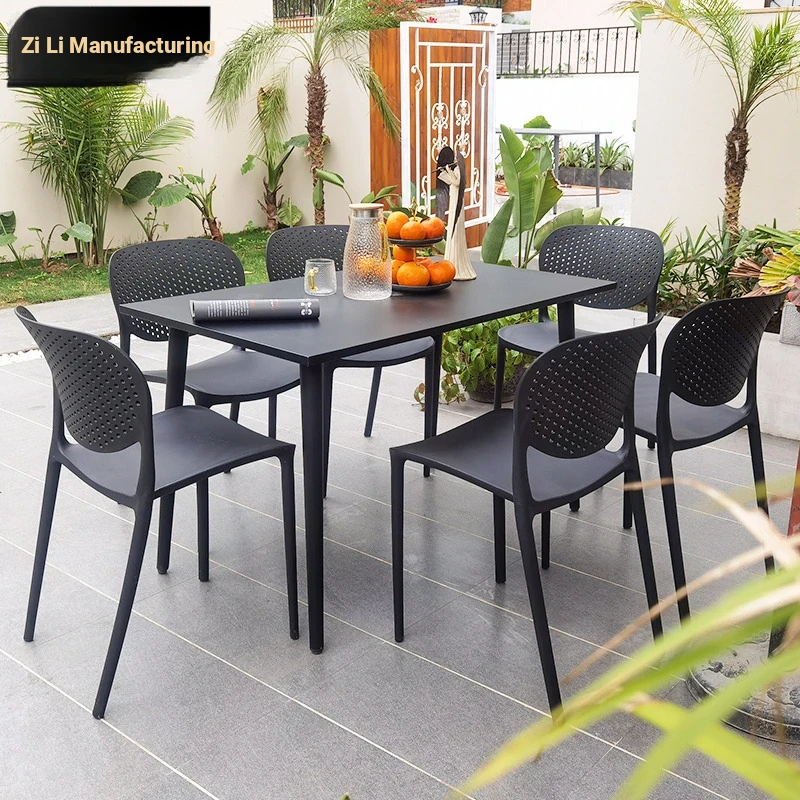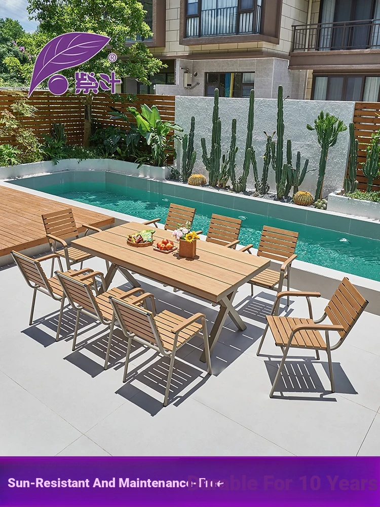 Zili Outdoor Plastic Wood Dining Set - Stylish Villa Patio Rattan Chairs and Plastic Wood Garden Furniture for Outdoor Relaxation and Entertaining