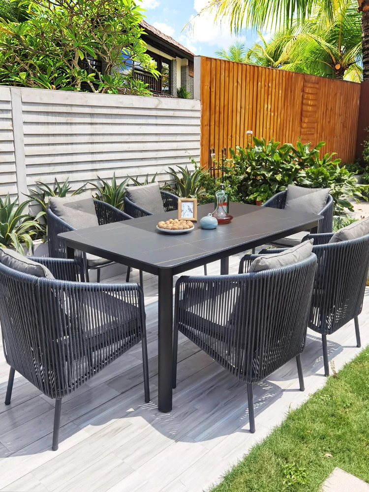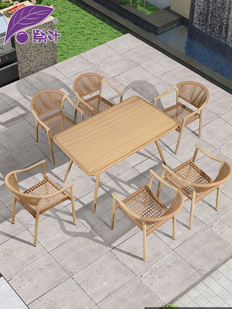 Purple Leaf Outdoor Furniture Set - Nordic Style Villa Garden Dining Table with Rope-Woven Chairs for Patio and Courtyard - Designer Outdoor Seating Solution