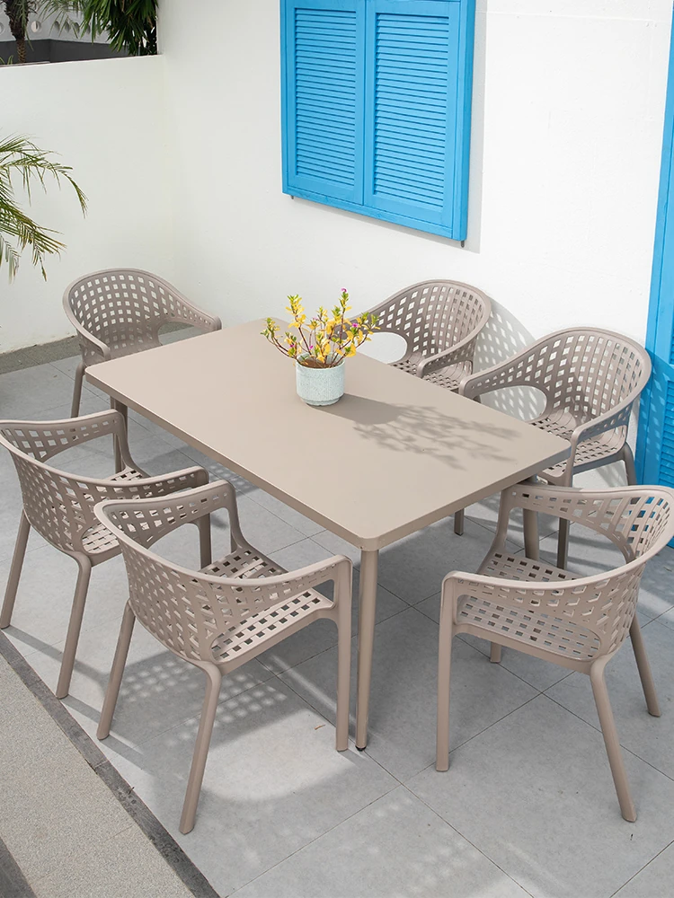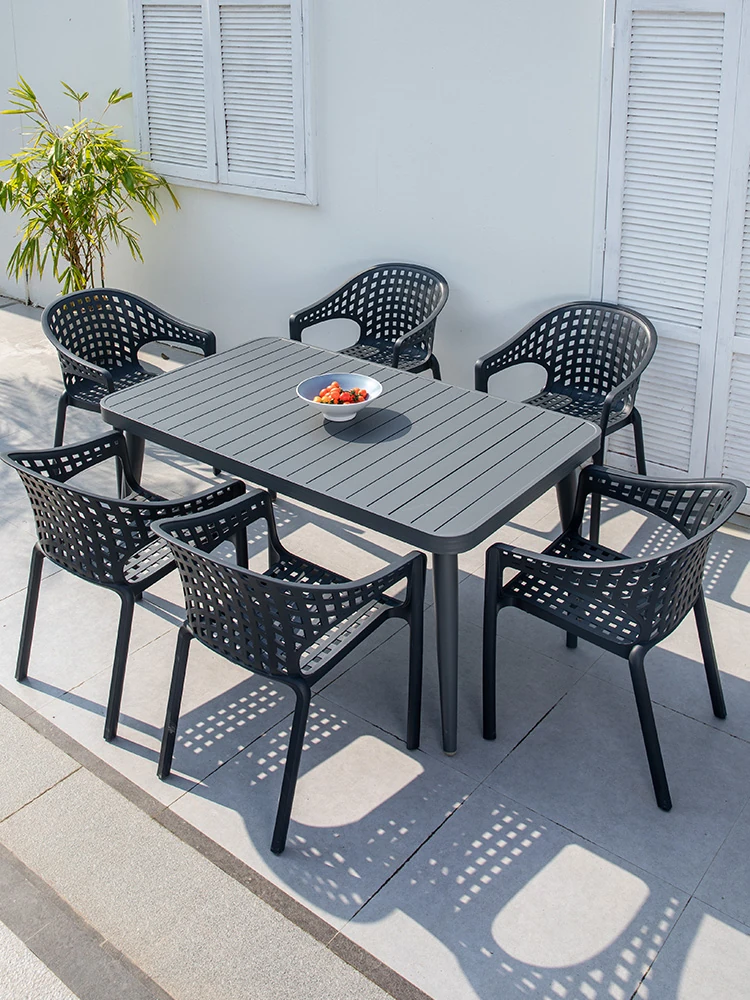 Stylish Outdoor Garden Furniture Set - Trendy Plastic Table and Chairs for Patio, Balcony, and Terrace - Perfect for Relaxing with Milk Tea in Your Courtyard or Garden!