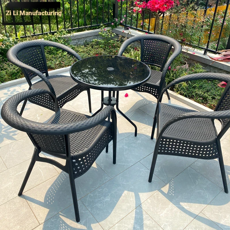 Zili Nordic Outdoor Villa Furniture Set - Modern Patio Rattan Table and Chairs for Tea Shops and Cafés, Minimalist and Stylish Design for Relaxation and Comfort