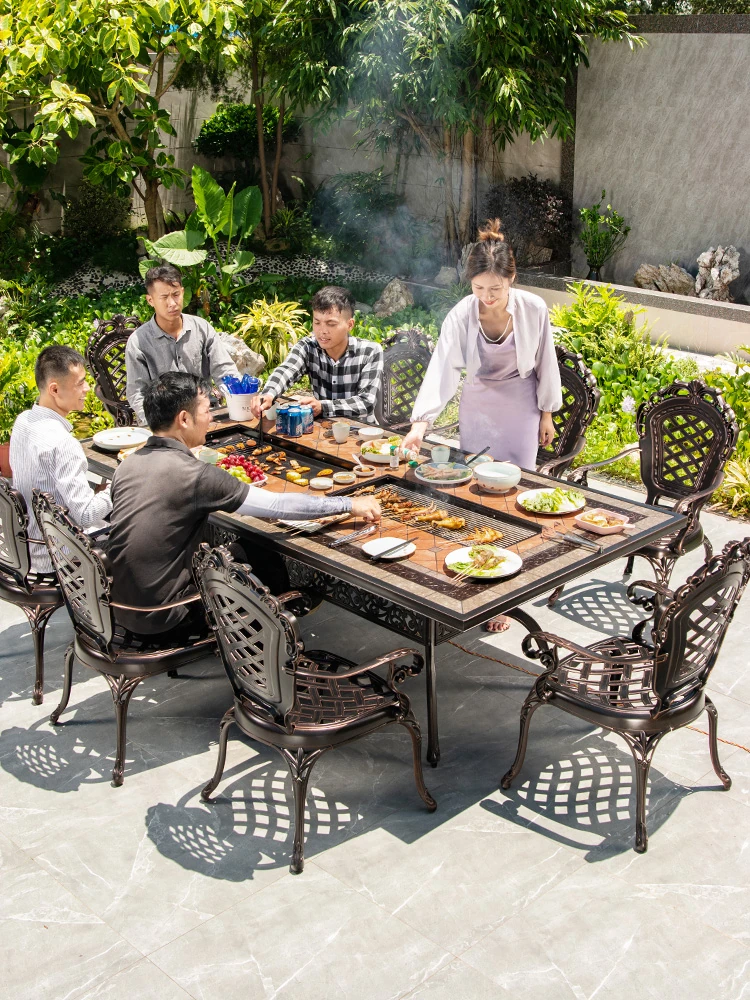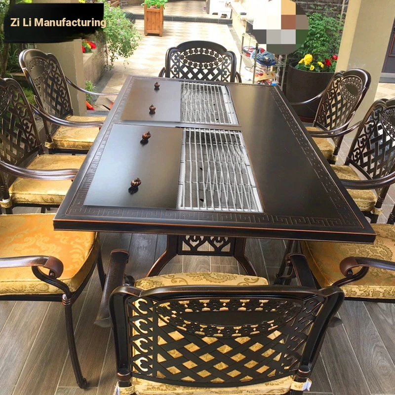 Zili Outdoor BBQ Table and Chair Set – Cast Aluminum Garden Patio Furniture for Charcoal Grilling, Perfect for Home Leisure and Outdoor Gatherings