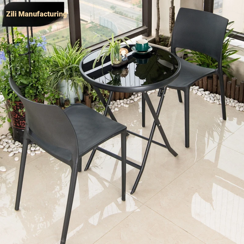 Zili Outdoor Plastic Patio Furniture Set - UV-Resistant and Waterproof Dining Table and Chairs for Cafes and Outdoor Spaces, Perfect for Balconies and Gardens