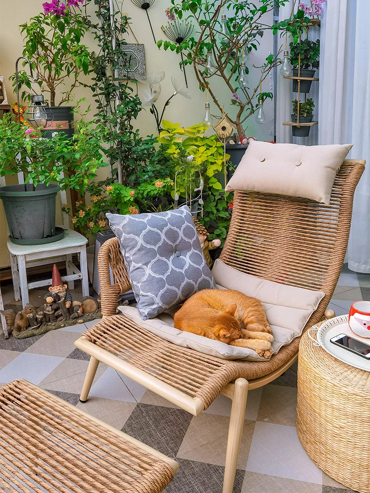 Waterproof and Sun-Resistant Purple Leaf Patio Furniture Set - Japanese Style Garden Terrace Reclining Chairs, Woven Leisure Chairs, Outdoor Rattan Chair Combination for Ultimate Relaxation.