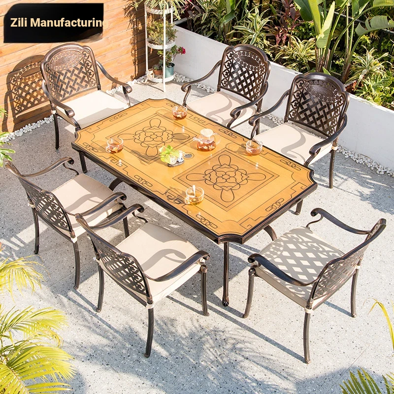 Zili Cast Aluminum Outdoor Furniture Set - Waterproof Garden Chair with Backrest, Perfect for Patios, Relaxing Lounging, and Stylish Outdoor Dining Tables and Chairs.