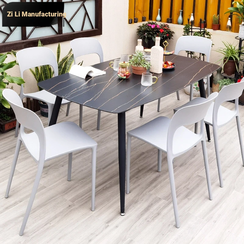Zili Outdoor Leisure Table and Chair Set - Creative PVC Chairs with Backrest and Rock Slab Dining Table for Café Patios - Stylish and Minimalist Design