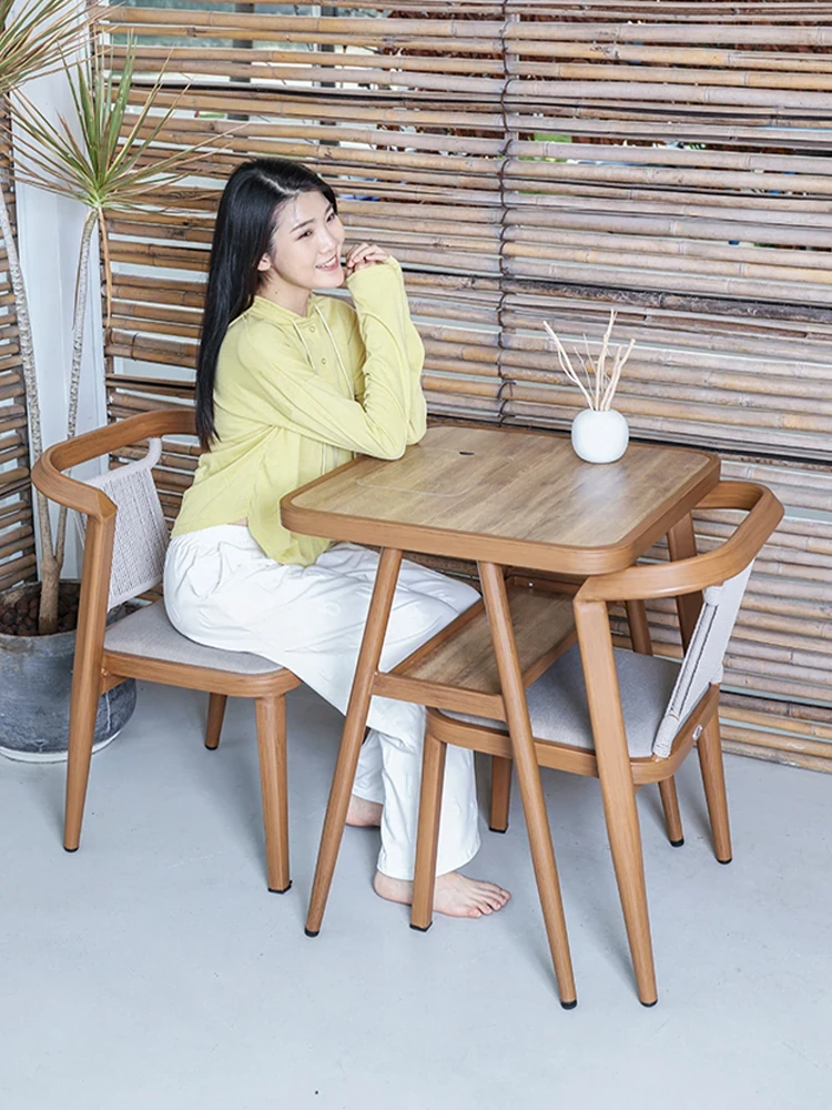 Zili Outdoor Patio Furniture Set - Aluminum Alloy & Anti-Corrosive Wood-Plastic for Garden, Villa, and Café - Stylish and Durable Outdoor Dining Arrangement