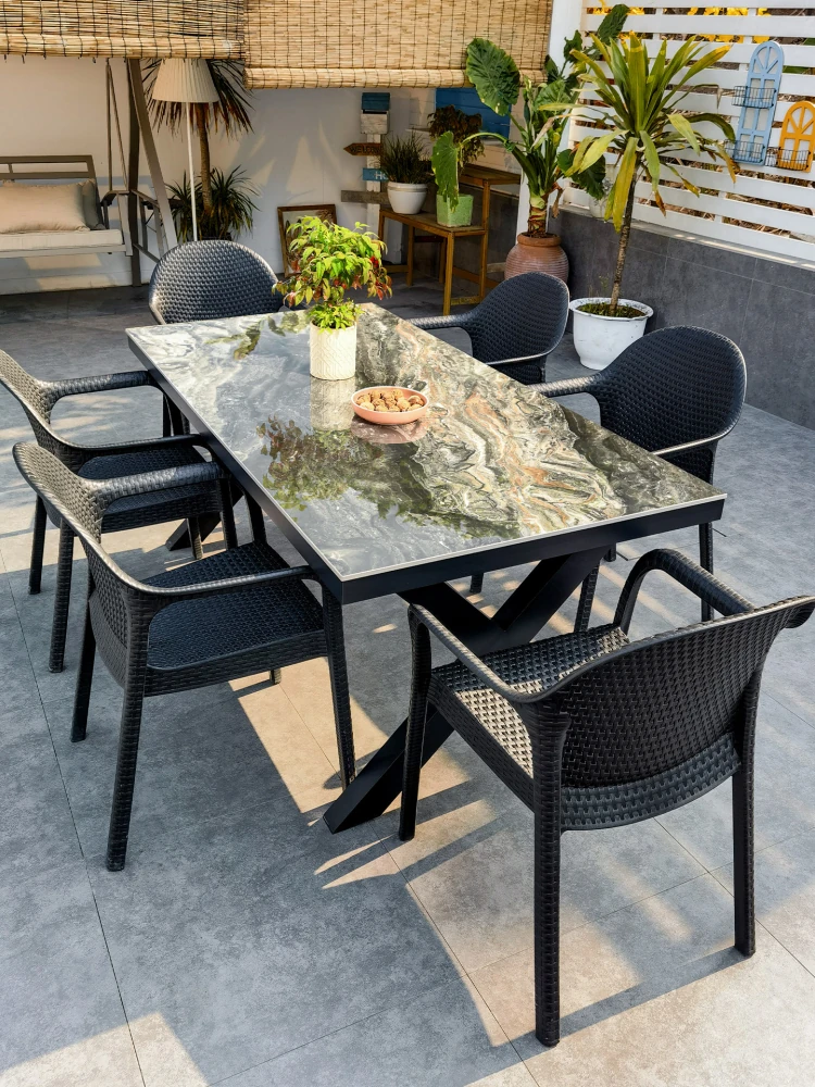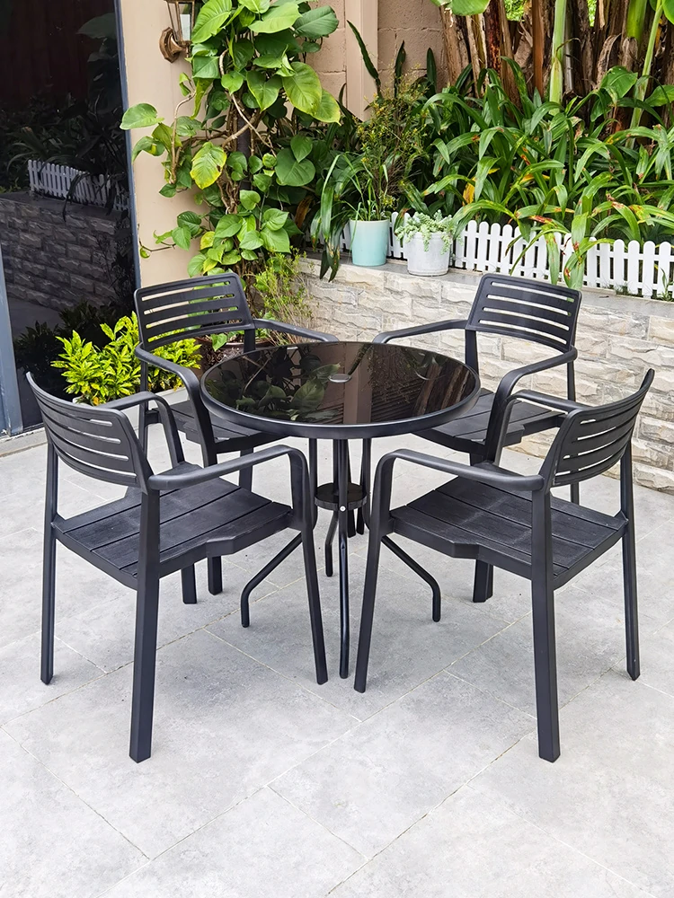 Zili Outdoor Black Slate Dining Set - Stylish Patio Table and Chairs for Garden, Villa, and Terrace - Perfect for Relaxing Tea Time in Your Outdoor Space