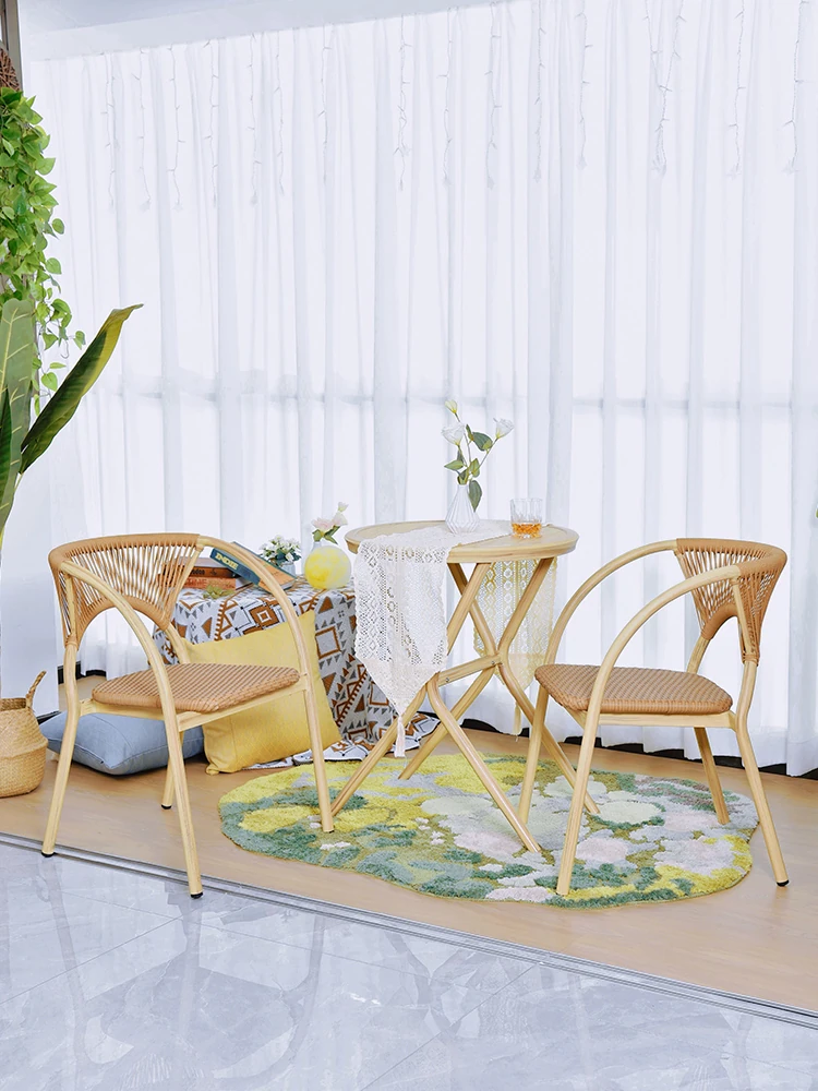 Purple Leaf Balcony Leisure Chair Rattan Set - 3-Piece American Style Outdoor Patio Furniture, Creative Wicker Table and Chair Combo for Relaxation. Perfect for enhancing your outdoor space!