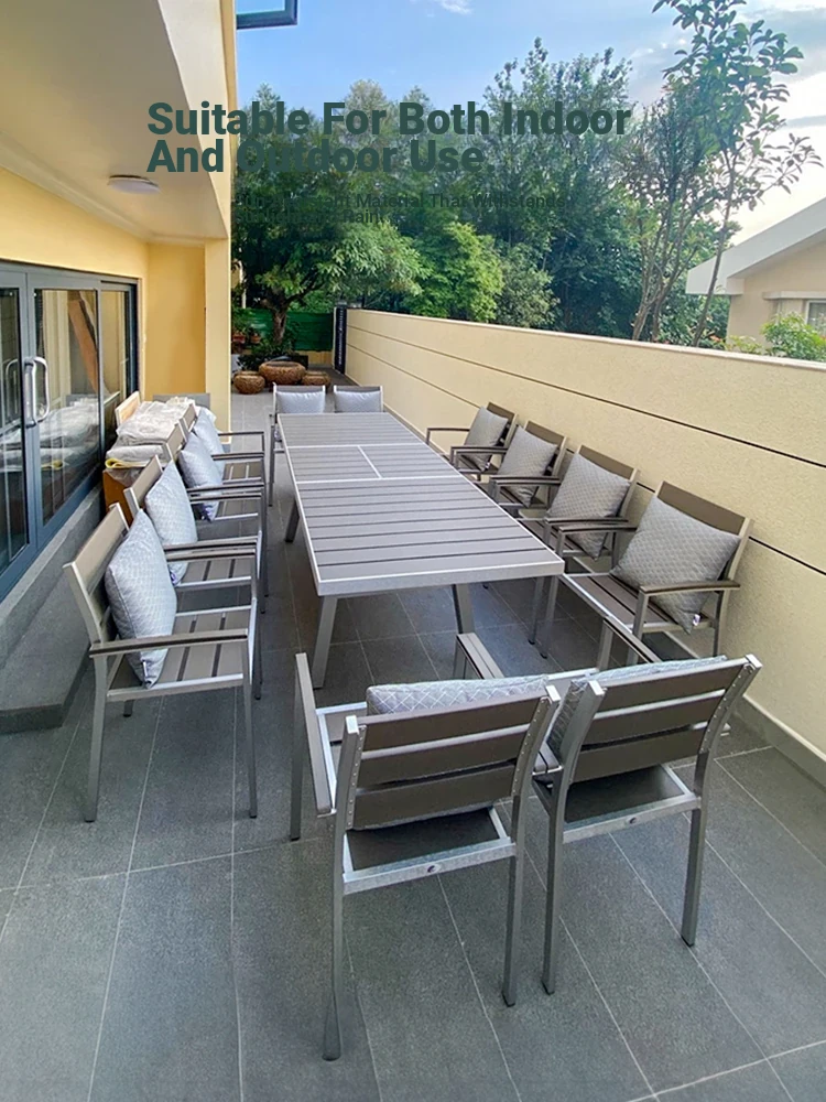 Zili Outdoor Dining Set - Expandable Plastic-Wood Long Table with Chairs for Patio and Garden, Perfect for Outdoor Relaxation and Entertaining