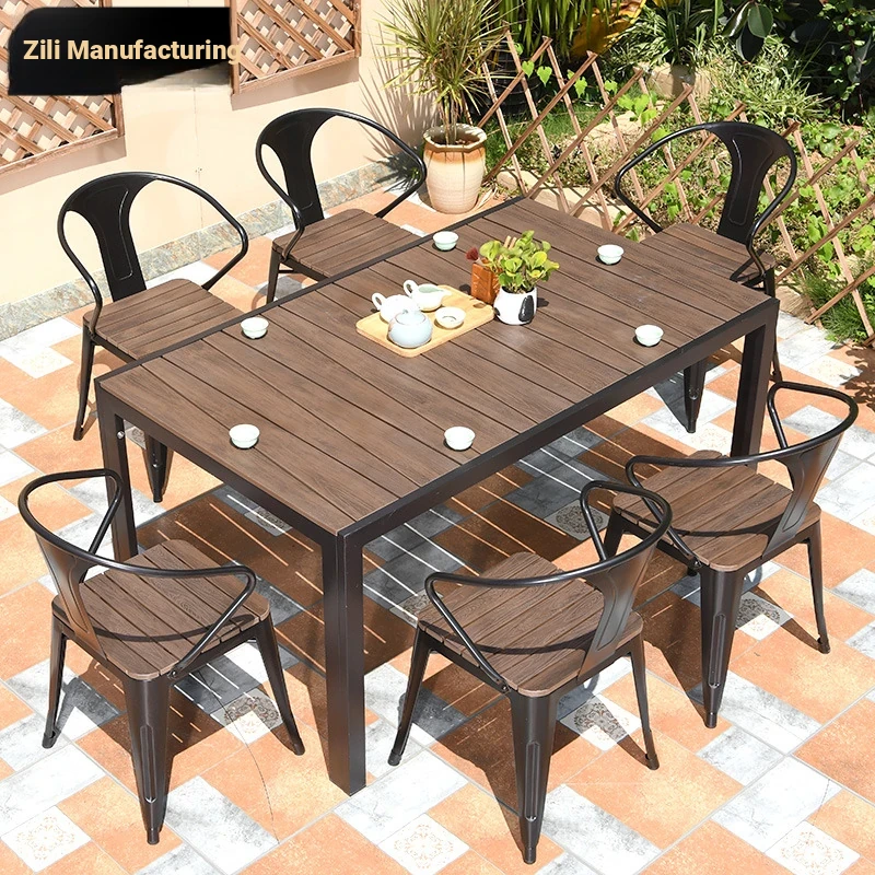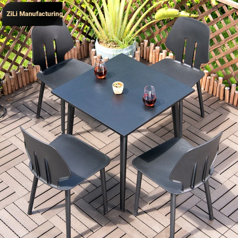 Zili Outdoor Waterproof and Sunproof Plastic-Wood Garden Furniture Set - Perfect for Patios, Villas, and Cafés! Stylish Chairs and Tables Ideal for Milk Tea Shops and Coffee Houses.
