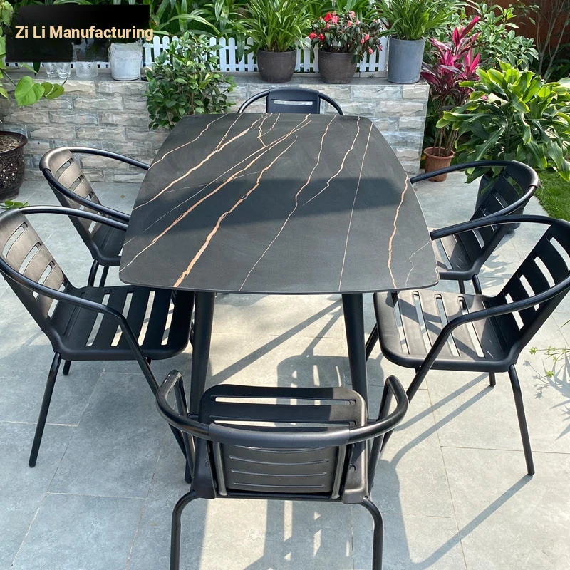 Zili Outdoor Rock Plate Dining Set - Modern Minimalist Long Table and Chairs for Garden, Villa, and Patio - Perfect for Relaxation and Outdoor Gatherings