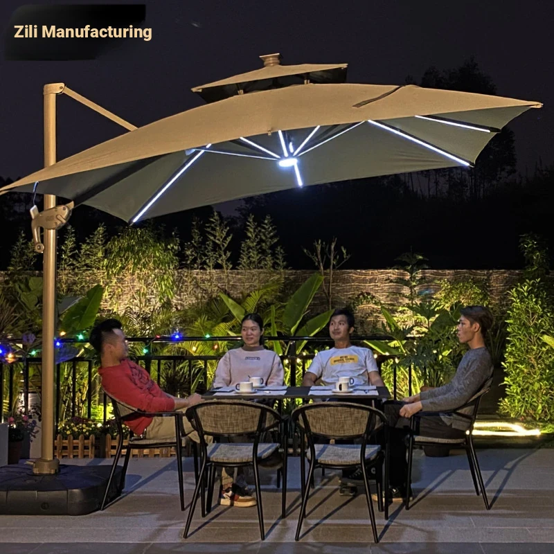 Zili Outdoor Umbrella with Integrated LED Lighting - Perfect for Patios, Gardens, and Balconies. Waterproof and UV-Resistant, Ideal for Villa Outdoor Spaces. Enjoy Stylish Shade and Ambiance!