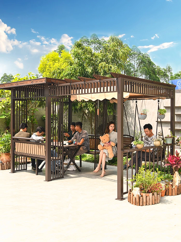 Zili Outdoor Swing Grape Arbor Gazebo - Perfect for Farm Stays, Courtyards, Gardens, and Villas. Enjoy a Relaxing Shade Pavilion with Climbing Vines for Your Leisure Time!