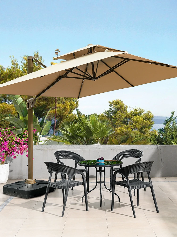 Outdoor Patio Table and Chair Set with Sunshade Umbrella – Perfect for Garden Relaxation, Cafés, and Balconies – Enjoy Your Leisure Time Under a Stylish Large Roman Umbrella!