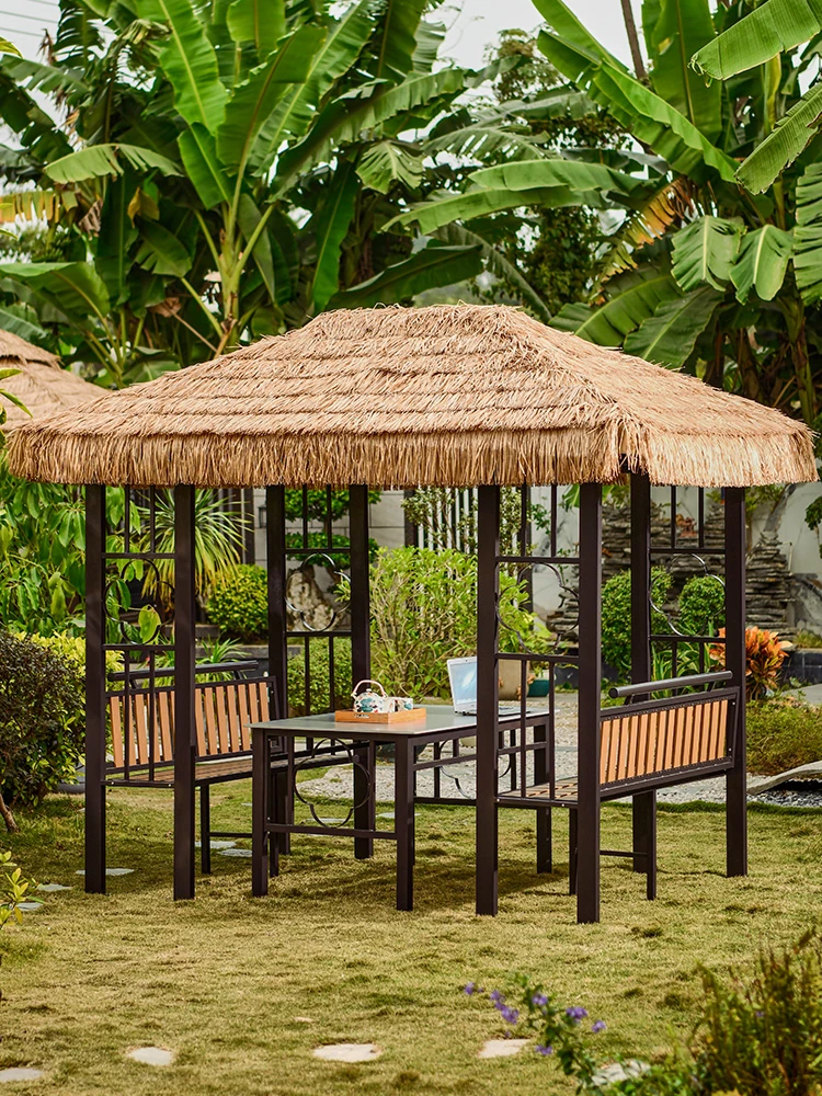 Zili Outdoor Round Thatch Pavilion - Elegant Iron Art Tent for Gardens, Resorts, and Farms | Perfect for Relaxation and Sunshade in Your Courtyard