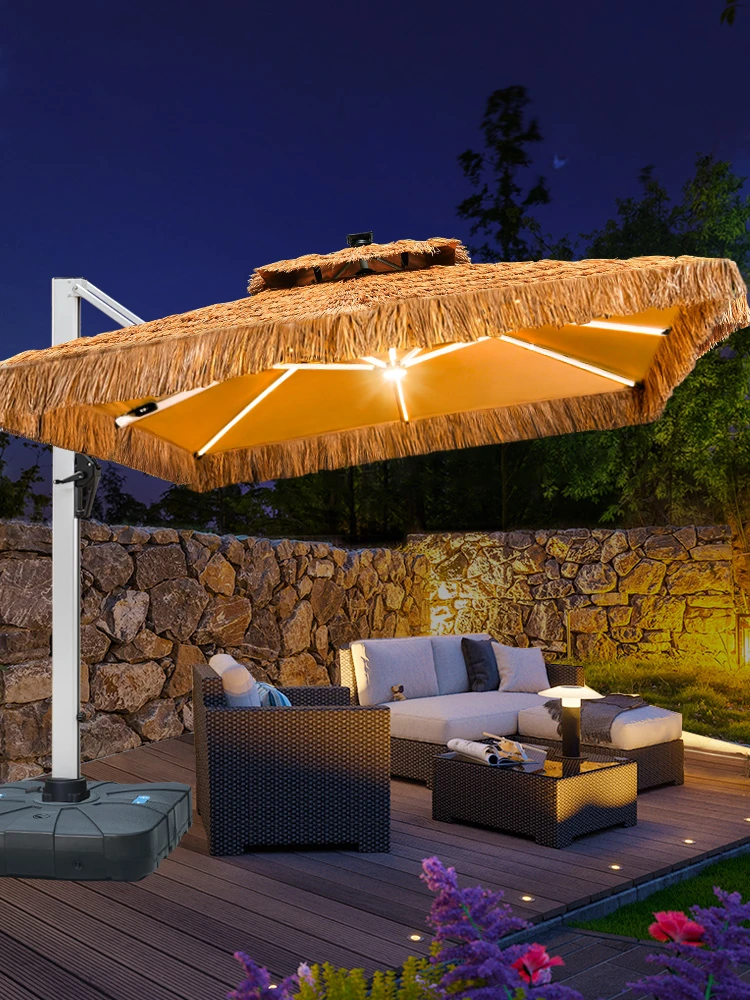Zili Outdoor Thatch Patio Umbrella - Waterproof & UV-Resistant Garden Umbrella with LED Light Strip, Perfect for Villas and Courtyards