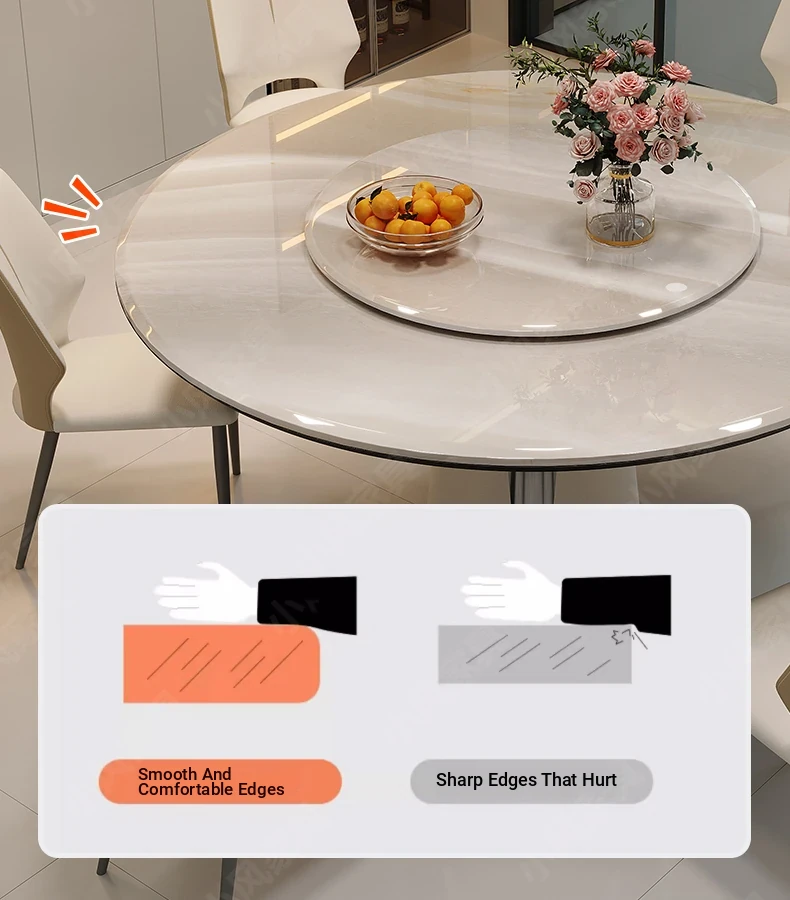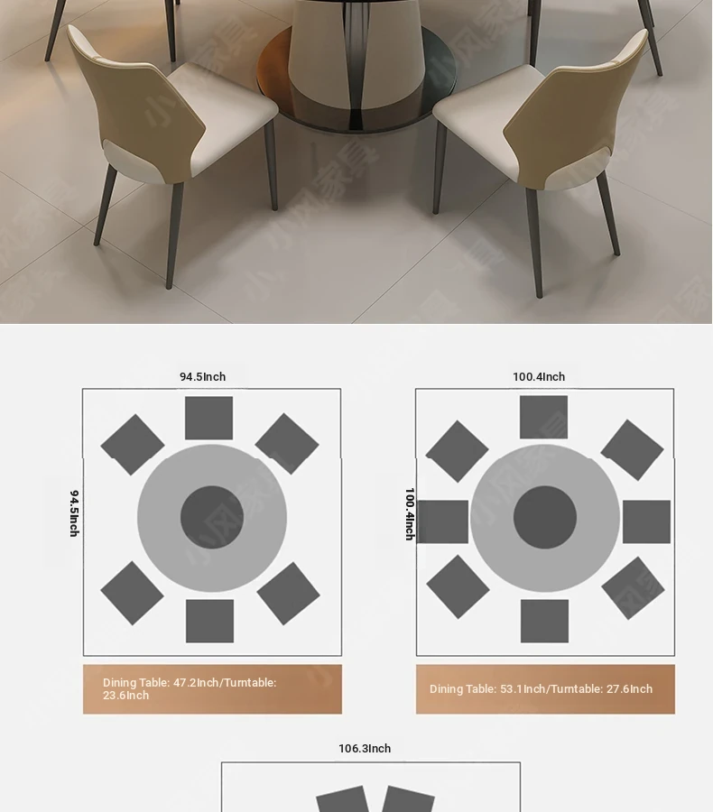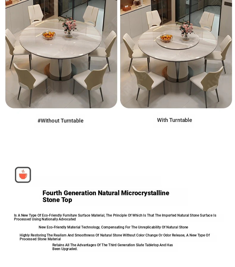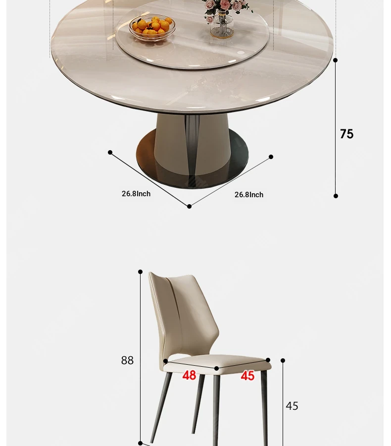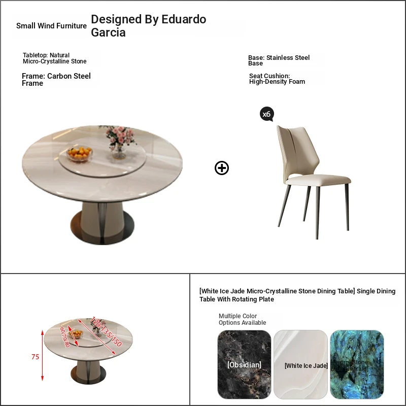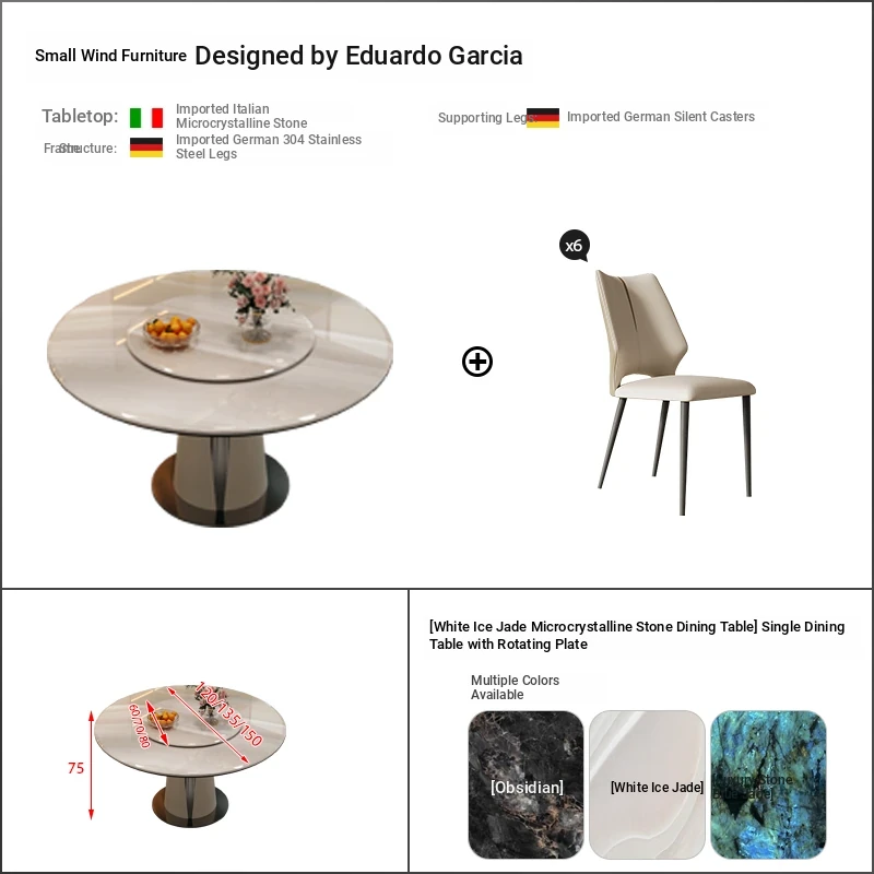 White ice Jade microlite single dining table [with turntable] + Designer chair * 6