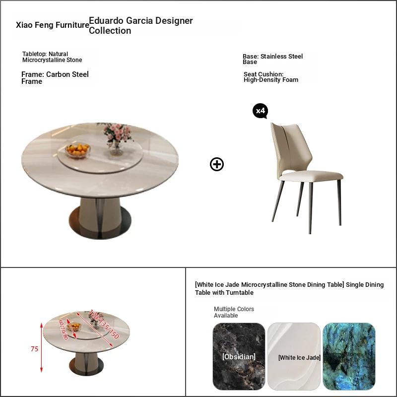White ice Jade microlite single dining table [with turntable] + Designer chair * 4