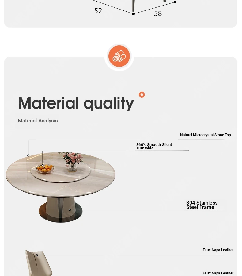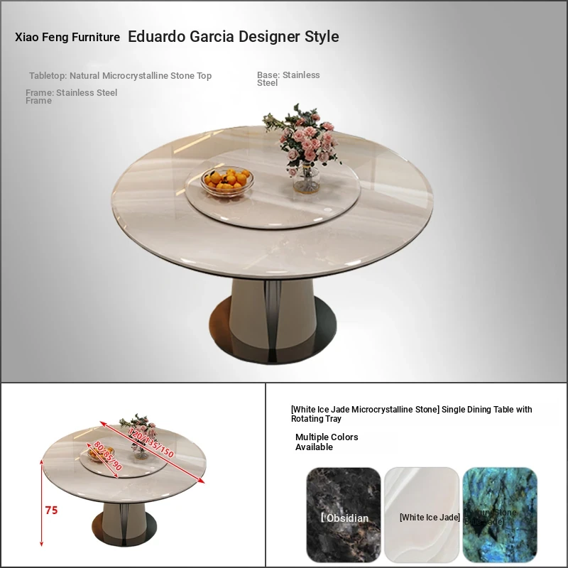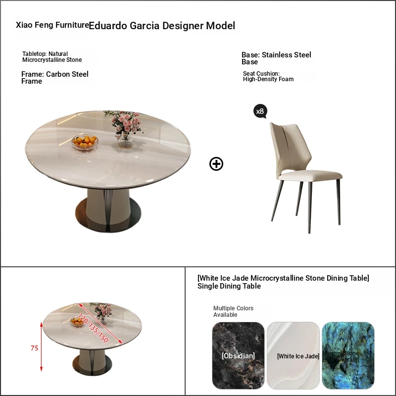 White ice Jade microlite single dining table [with turntable] + Designer chair * 8