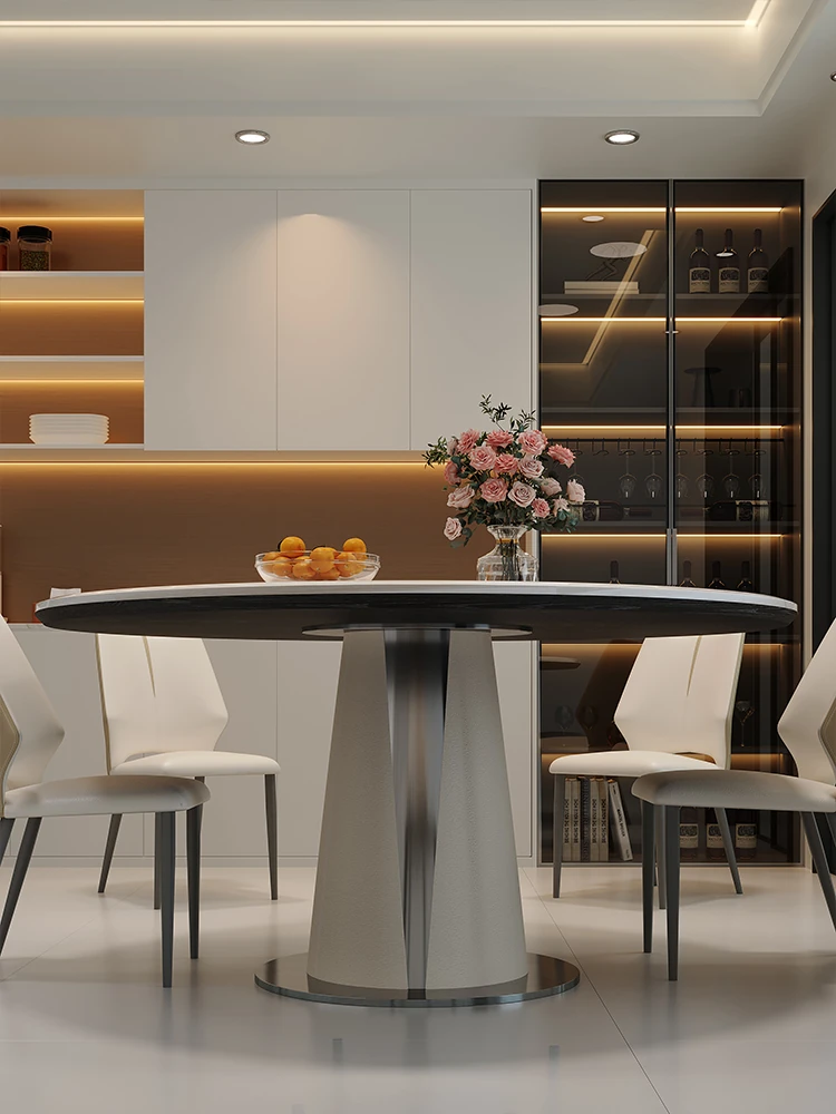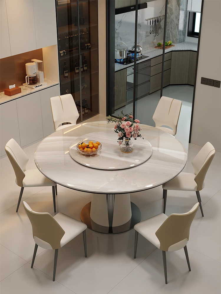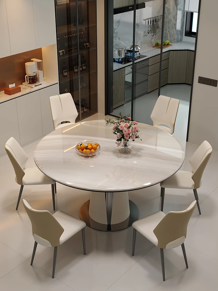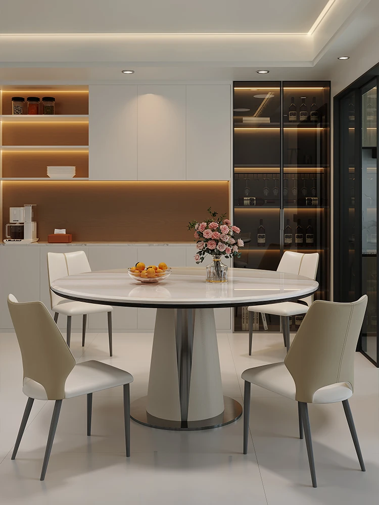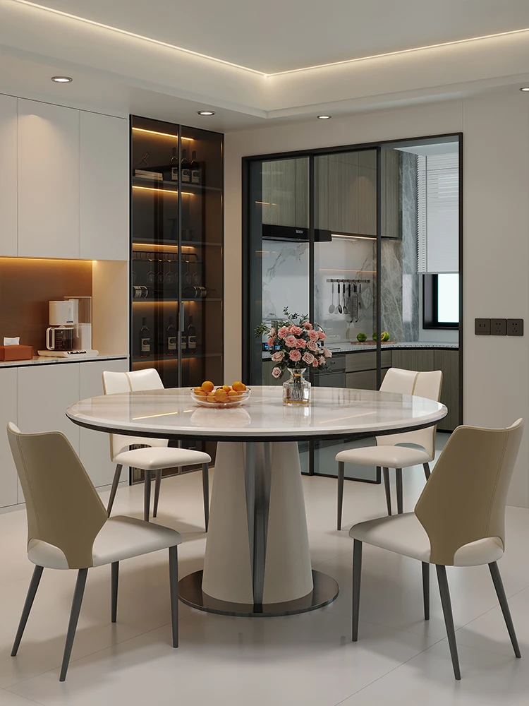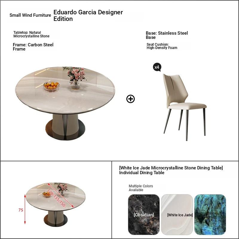 Elegant Modern Minimalist Dining Table Set for Small Spaces - Italian-Inspired Micro Crystal Stone Marble Table with Chairs