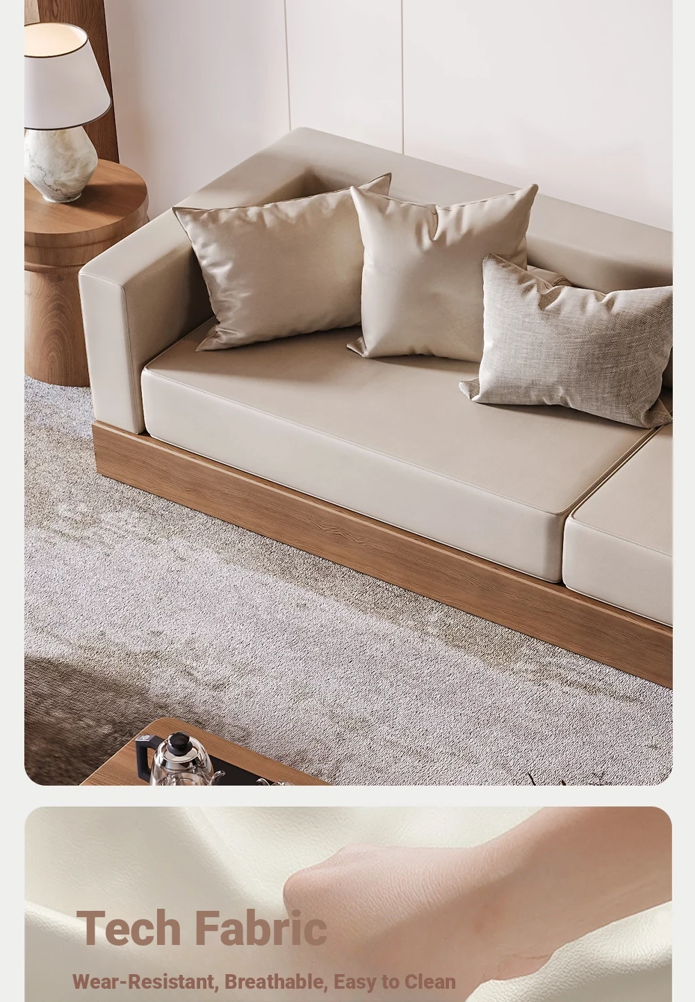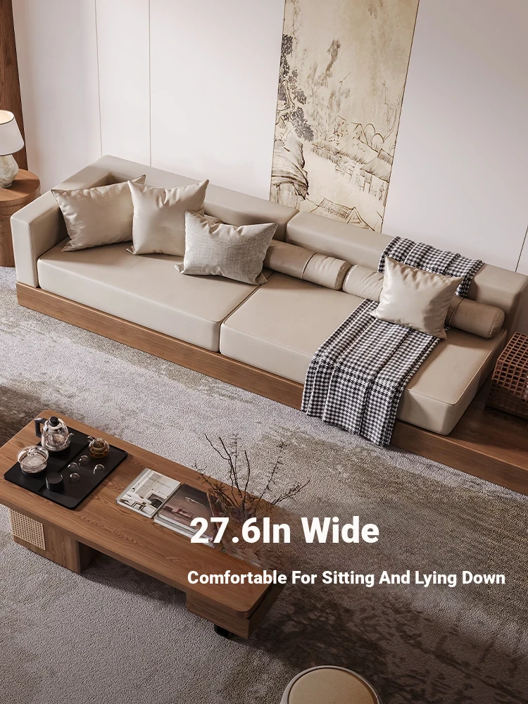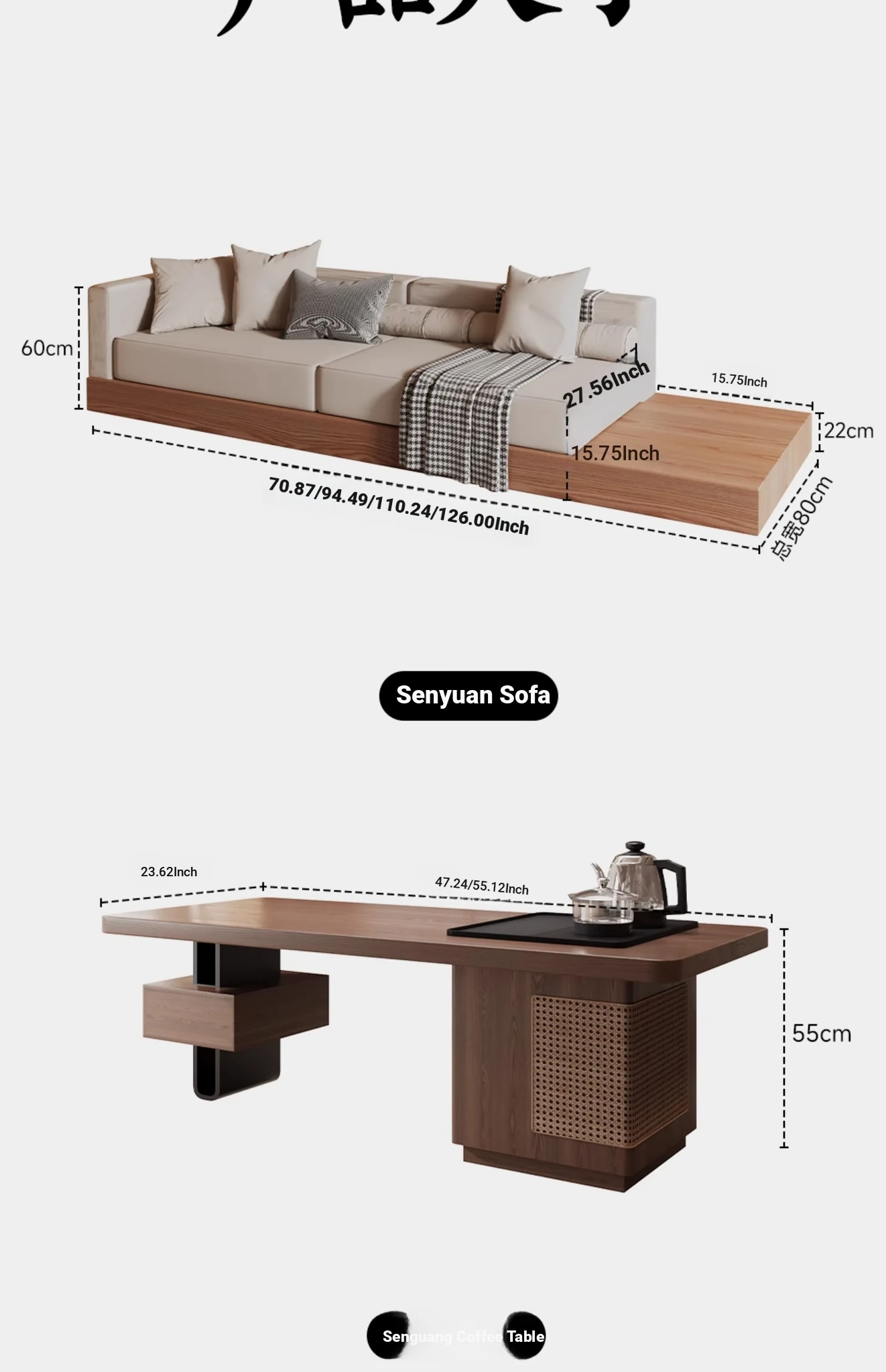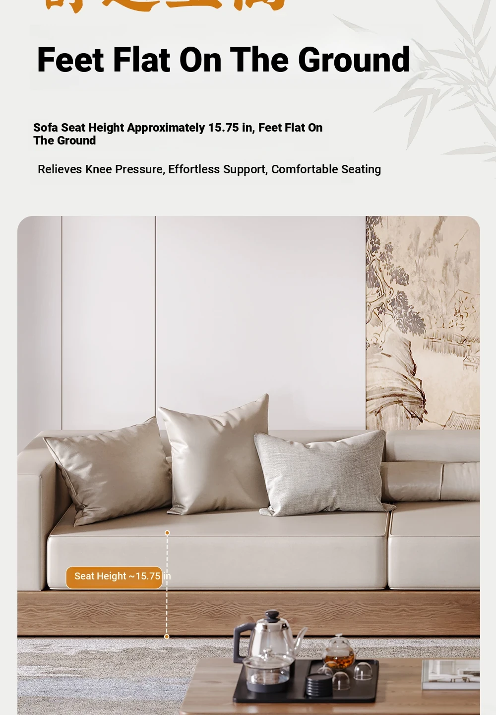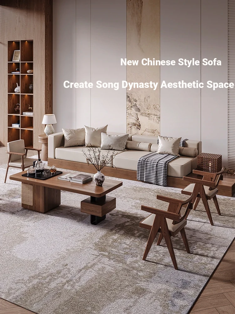 Elegant Solid Wood Sofa and Coffee Table Set Inspired by Song Dynasty Aesthetics - Perfect for Small Spaces, Straight Sofa Bed for Your Living Room - New Arrival 2025!