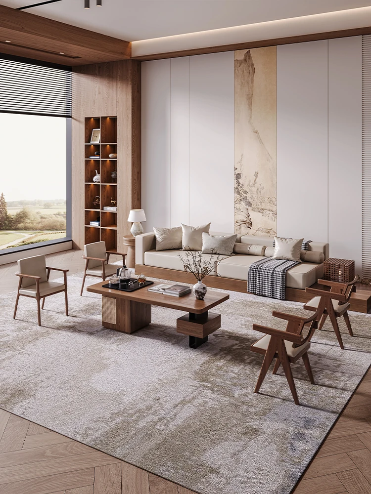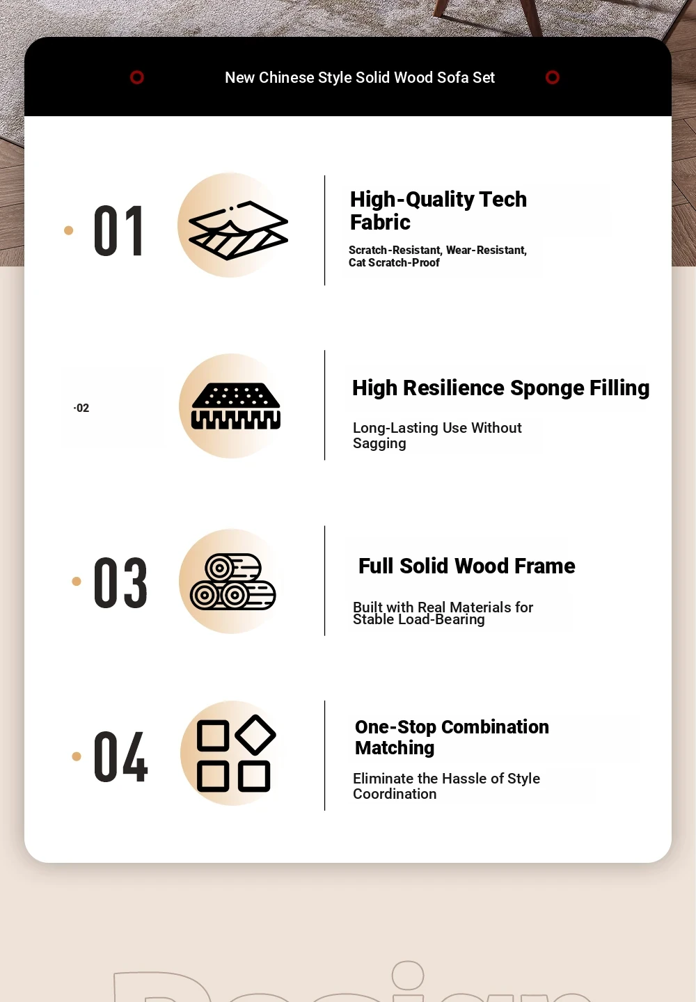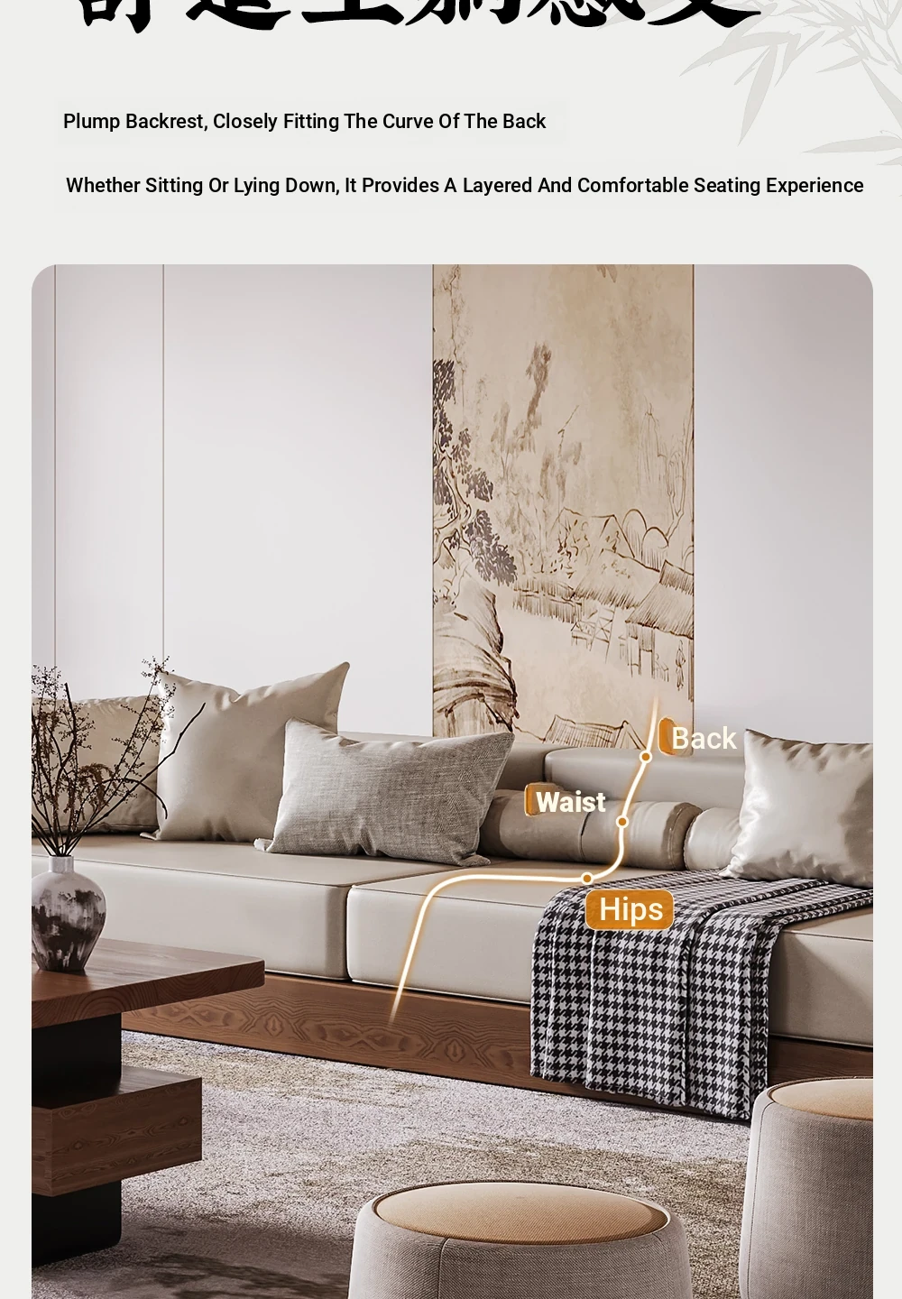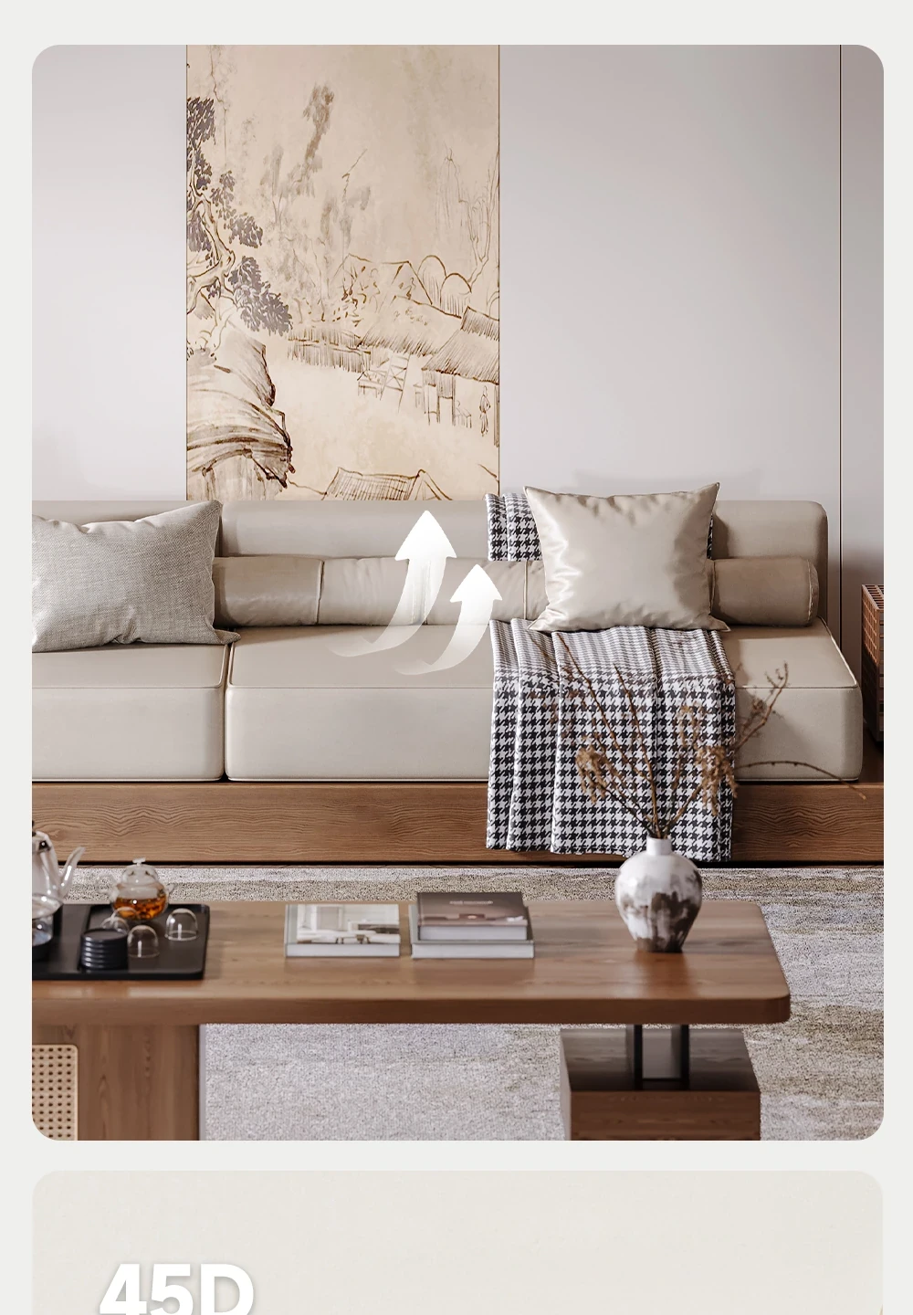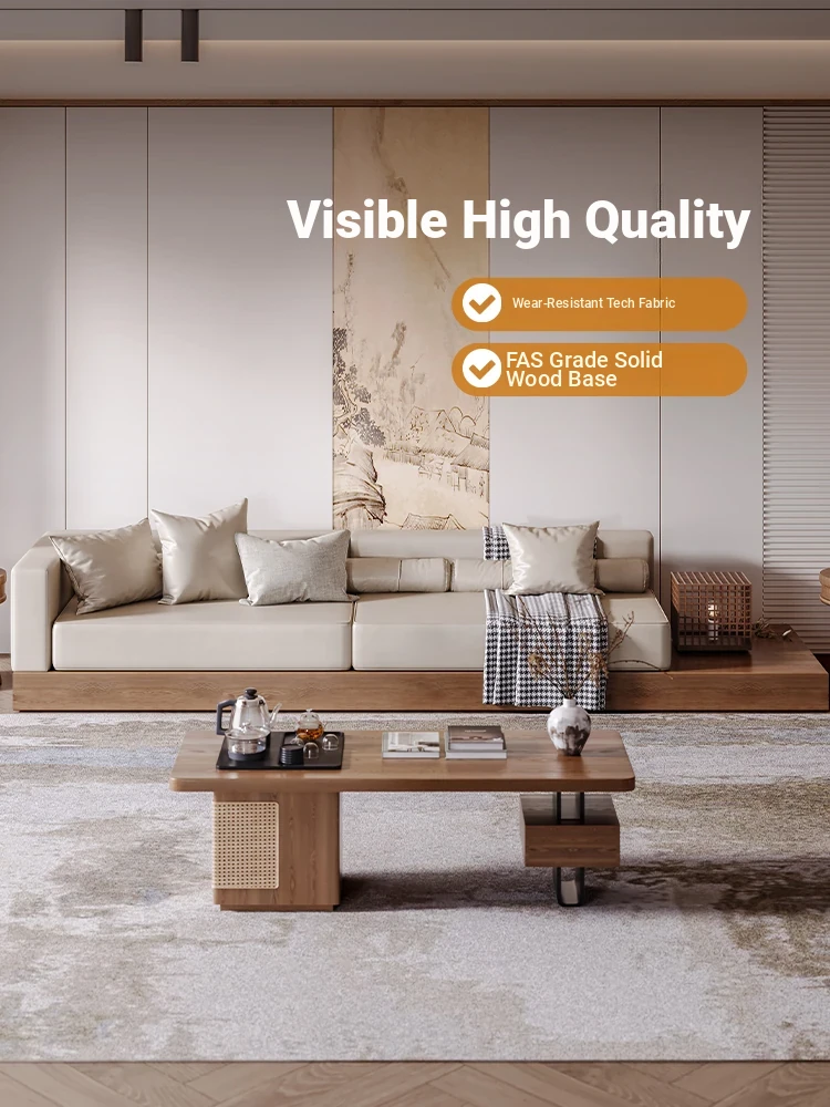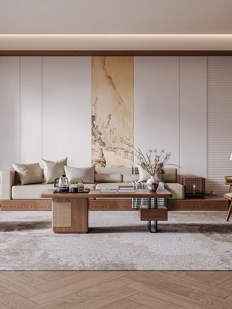 Elegant Solid Wood Sofa and Coffee Table Set Inspired by Song Dynasty Aesthetics - Perfect for Small Spaces, Straight Sofa Bed for Your Living Room - New Arrival 2025!