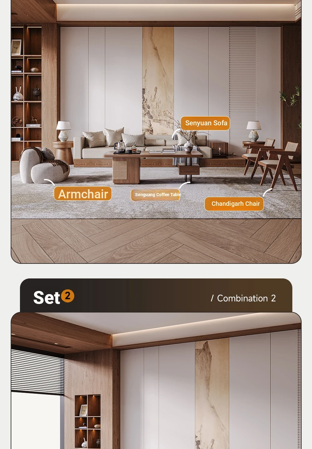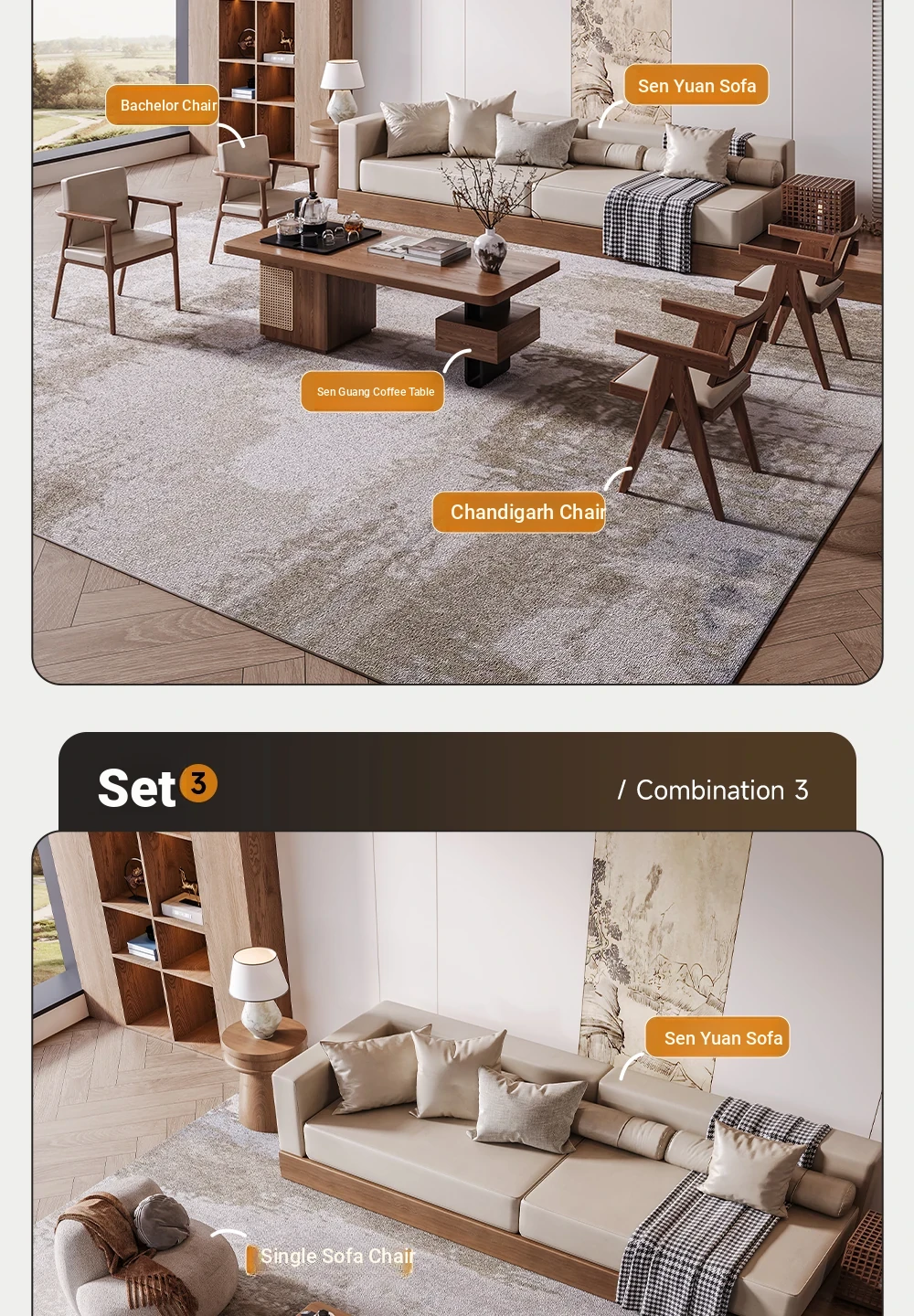 94.49 in sofa +47.24 in tea table + Bachelor chair * 2 + Chandigarh chair * 2
