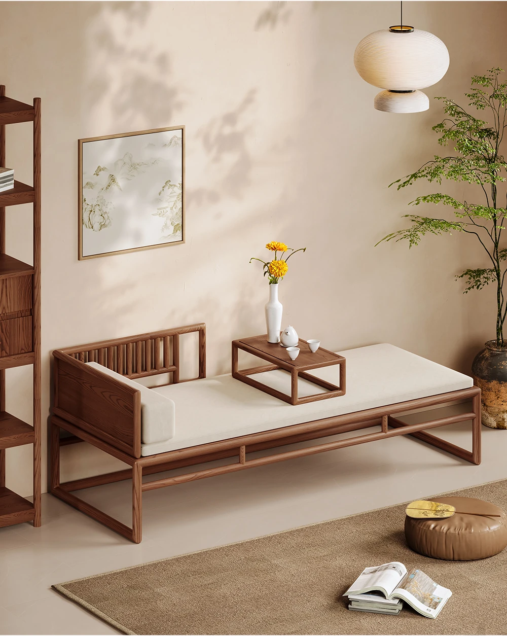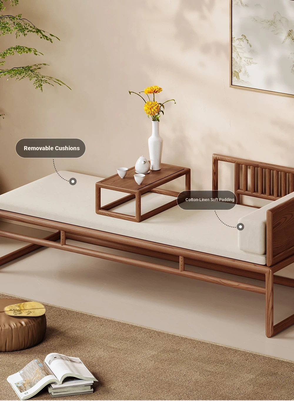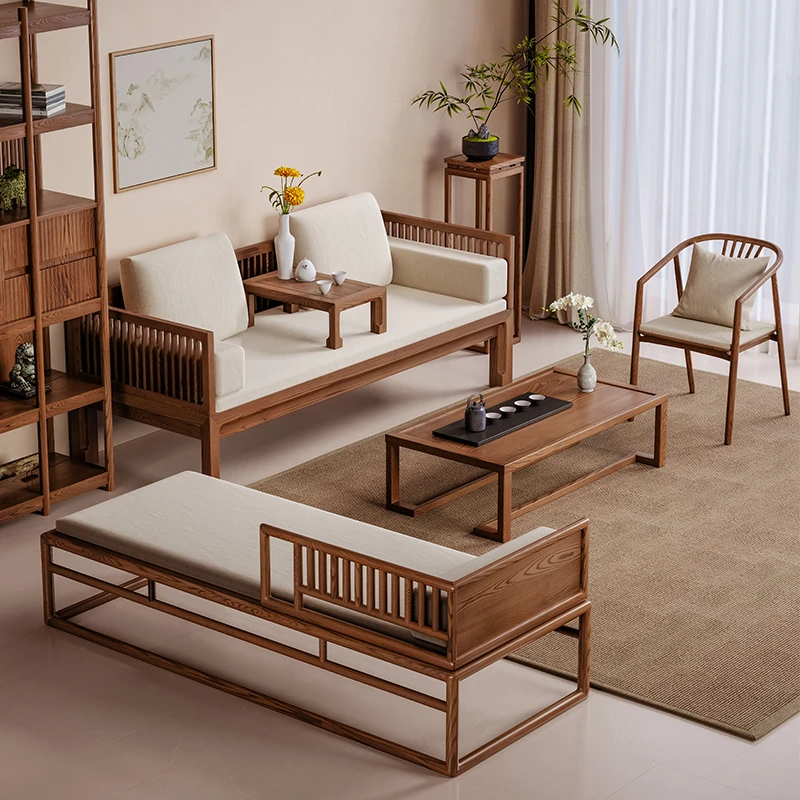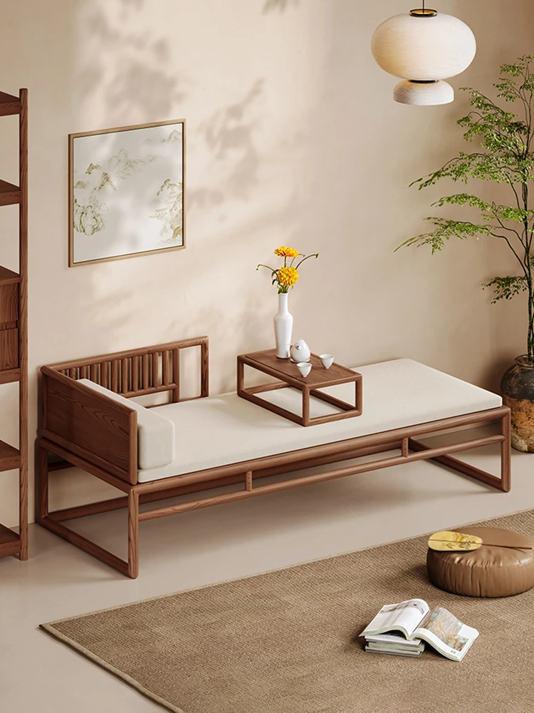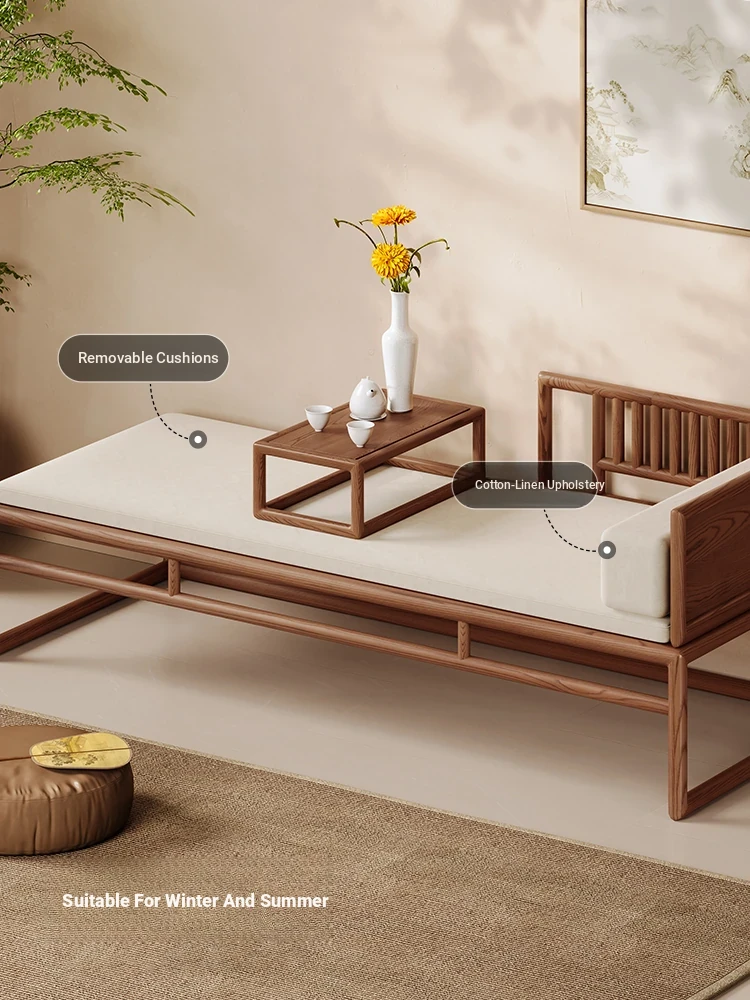 Elegant Song Dynasty Aesthetic Solid Wood Sofa and Tea Table Set - New Chinese Style Chaise Lounge and Premium 2025 Luo Han Bed, Perfect for Luxurious Living Spaces