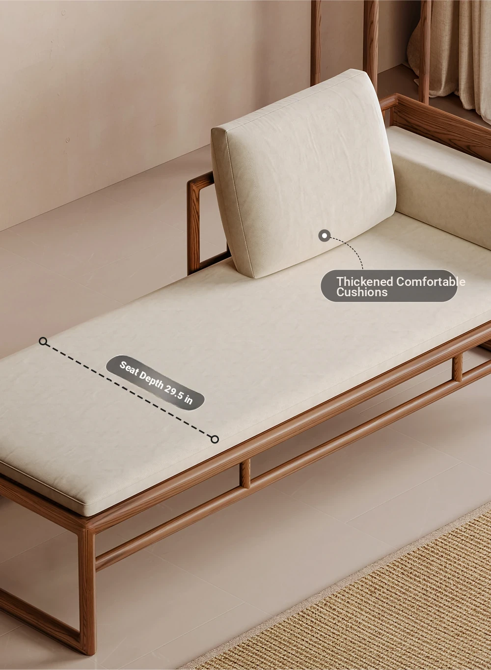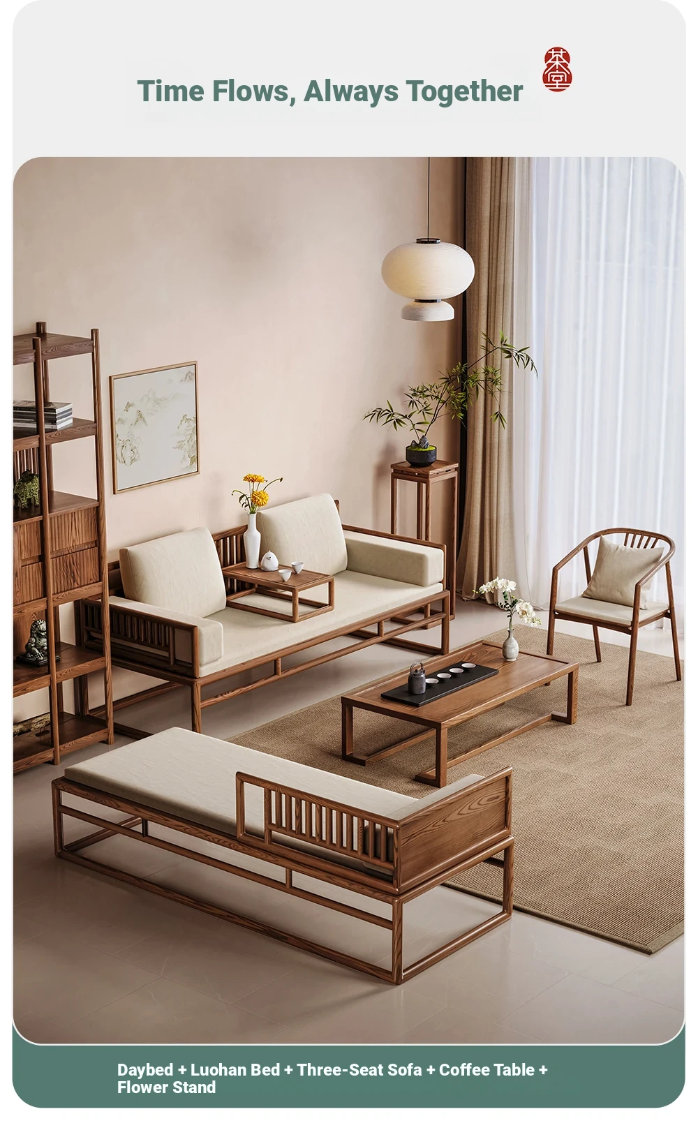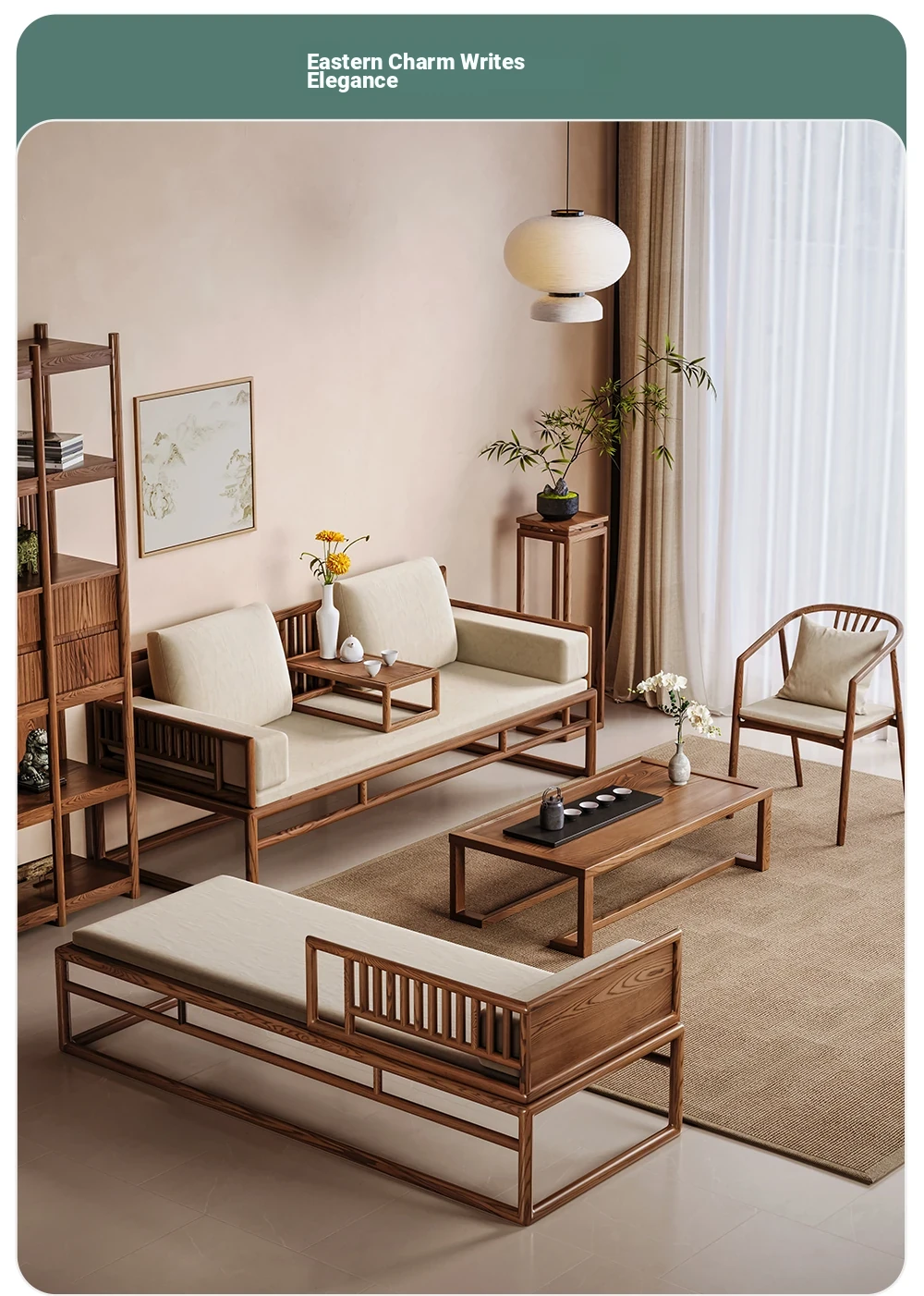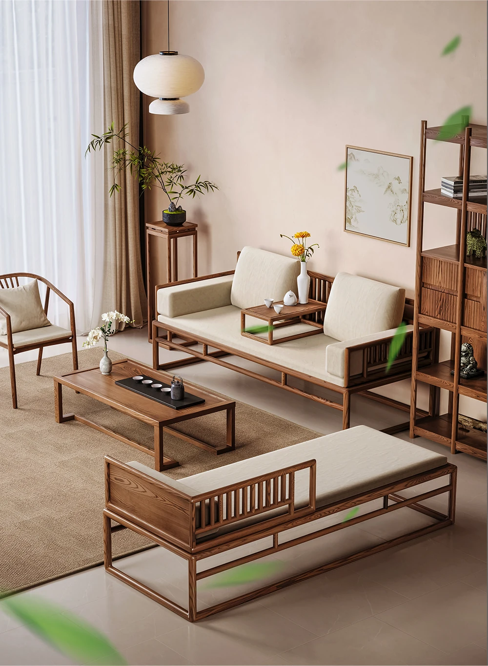 Elegant Song Dynasty Aesthetic Solid Wood Sofa and Tea Table Set - New Chinese Style Chaise Lounge and Premium 2025 Luo Han Bed, Perfect for Luxurious Living Spaces